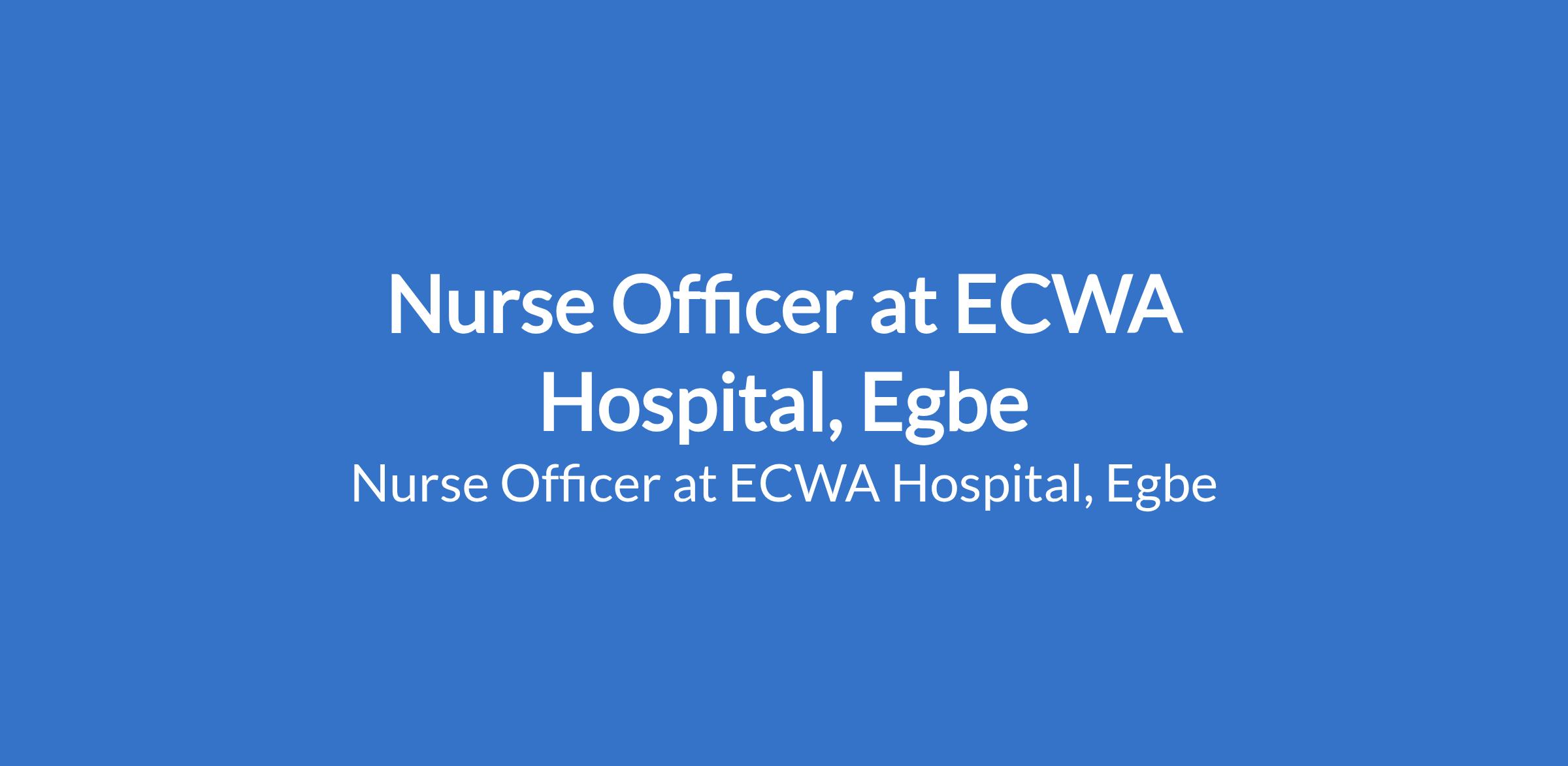 ECWA Hospital, Egbe is recruiting to fill the position of: Nurse Officer. The position is located in Kogi State. Interested candidates should possess National Diploma or BSc in Nursing with two years work experience especially in a mission setting is an asset.