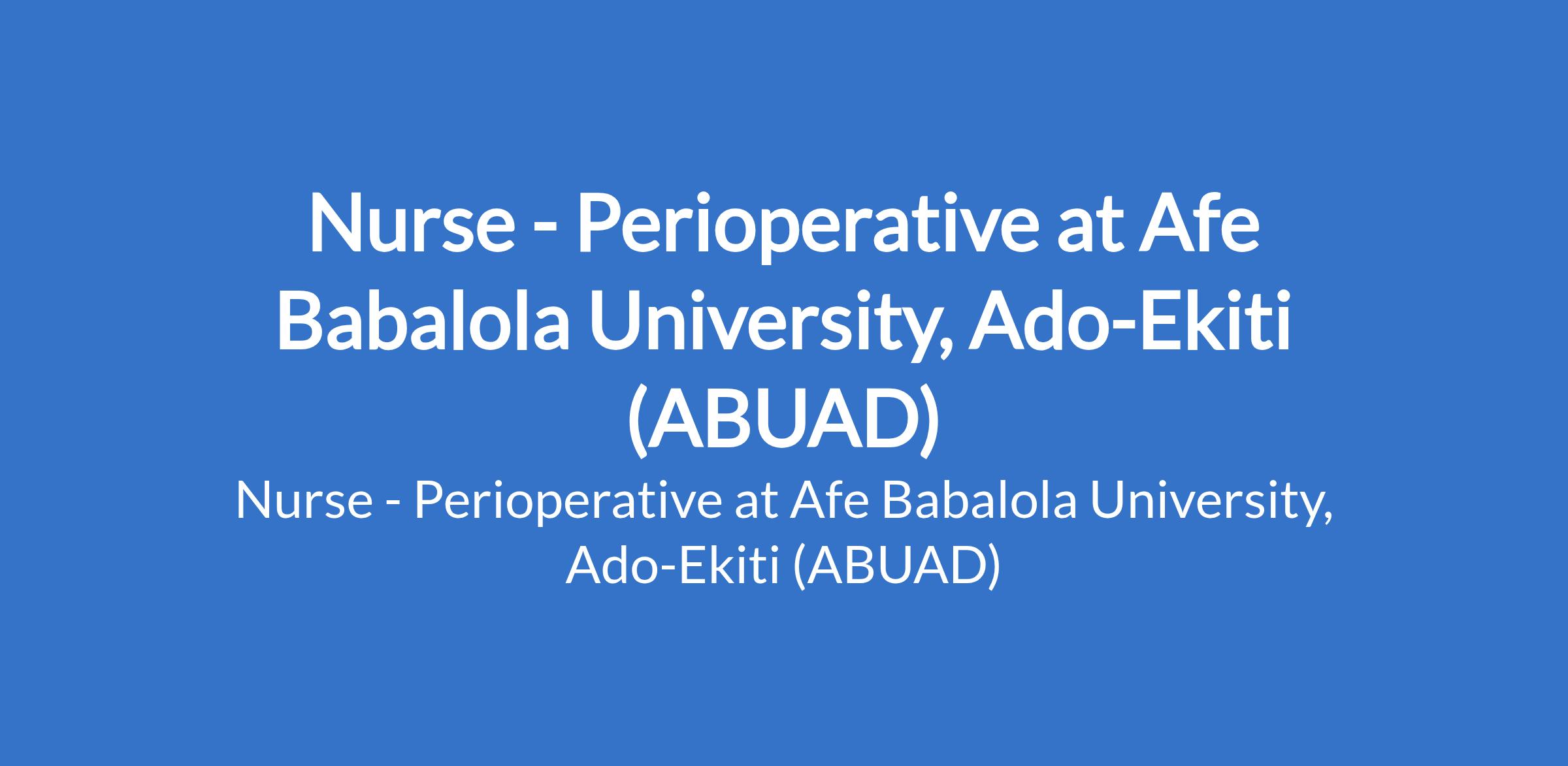 Afe Babalola University, Ado-Ekiti (ABUAD) is recruiting to fill the position of: Nurse - Perioperative. The position is located in Ekiti State. Interested candidates must possess a Bachelor of Nursing Science (B.NSc.) with not less than Second Class Lower Division.