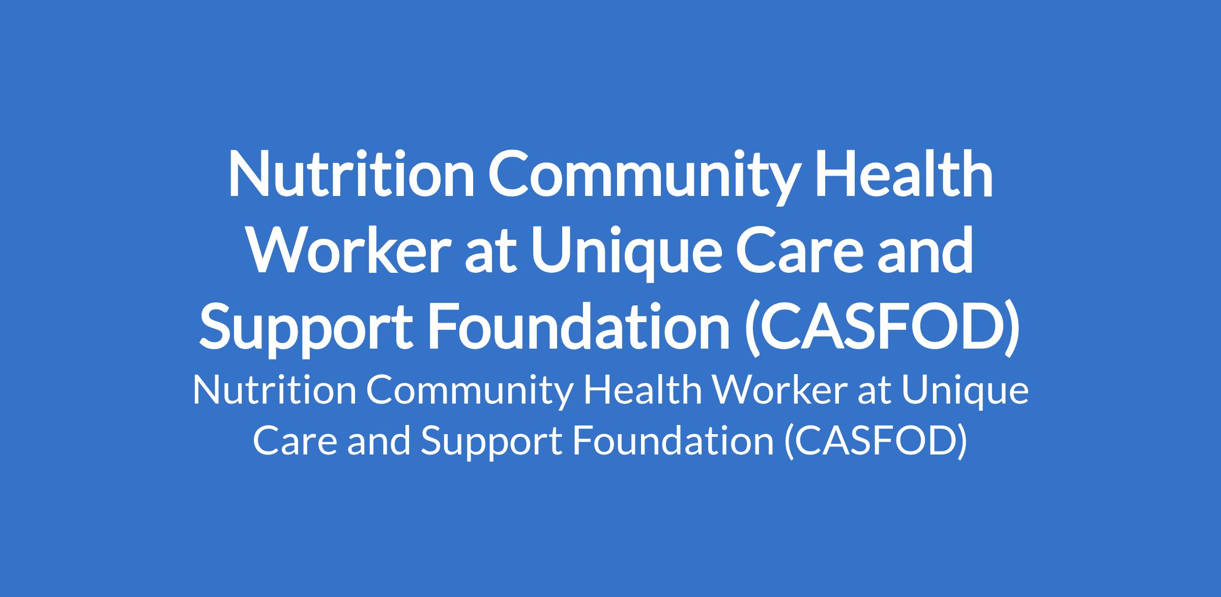 Unique Care and Support Foundation (CASFOD) is recruiting to fill the position of: Nutrition Community Health Worker. The position is located in Konduga, Borno State. Interested candidates should possess a Bachelors Degree or HND in Nutrition and Dietetics, Public Health, Nursing, CHEW, or Clinical Medicine with 13 years of proven experience in direct CMAM/IMAM implementation.