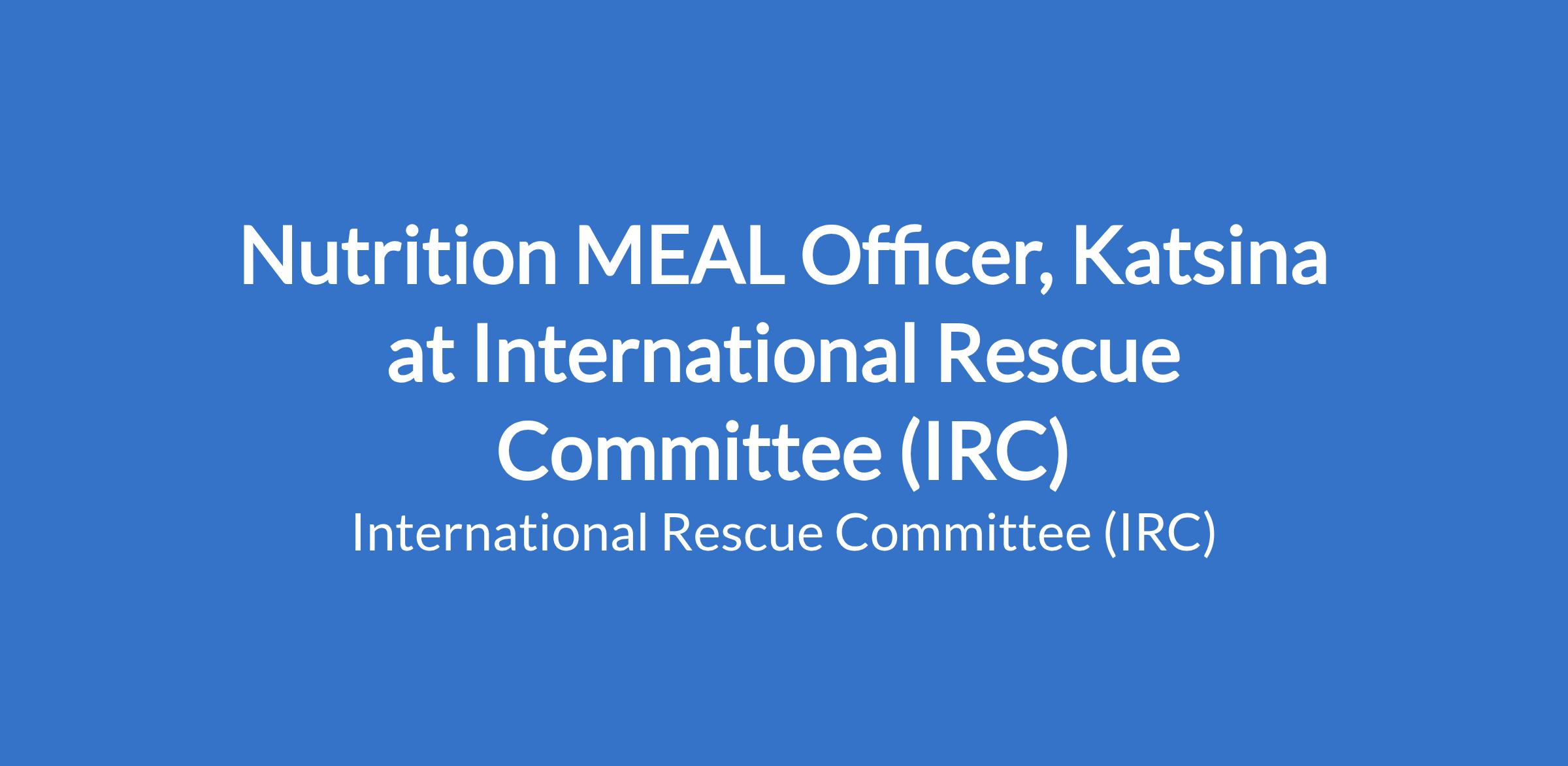 Nutrition MEAL Officer, Katsina at International Rescue Committee (IRC)