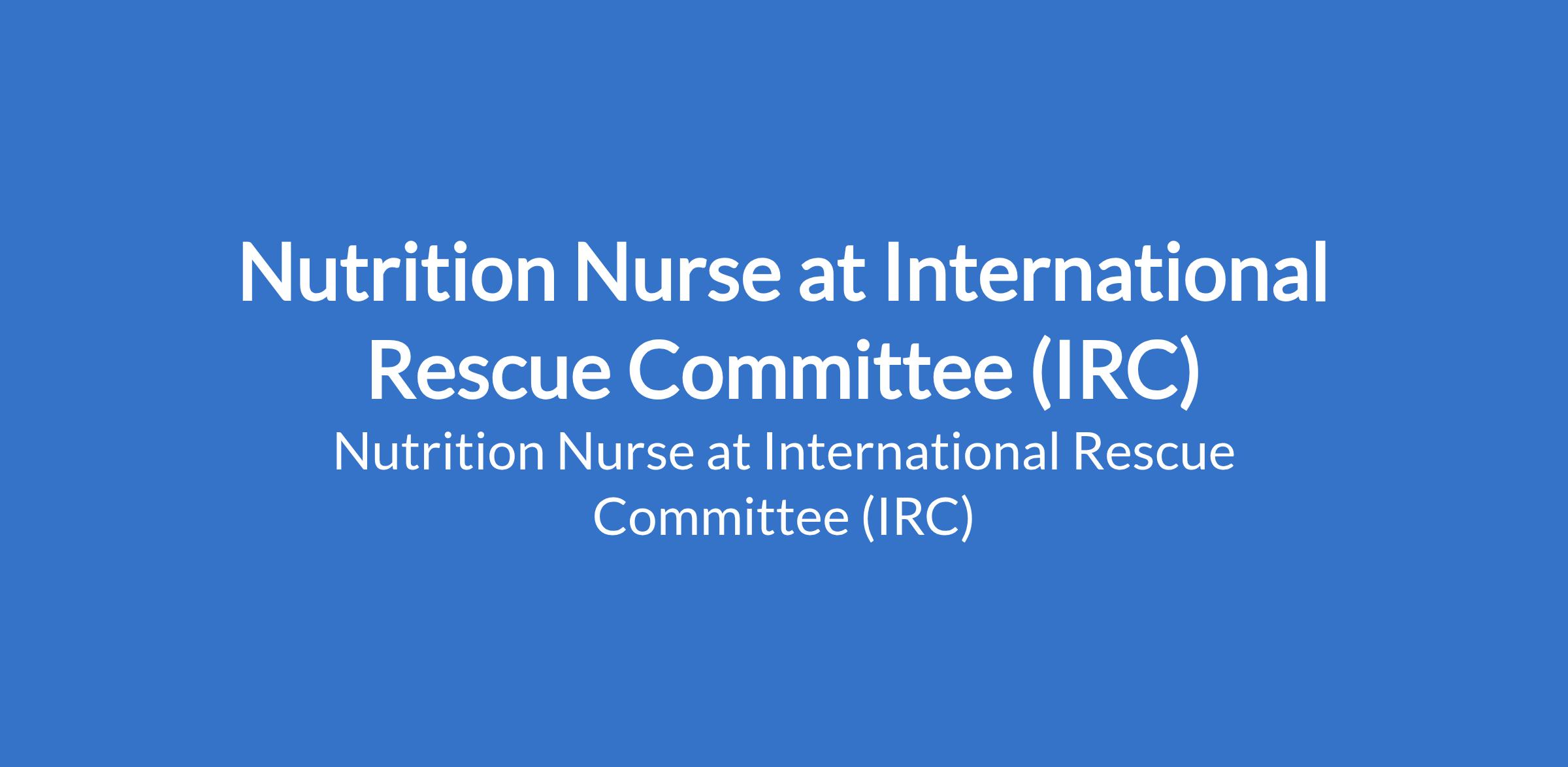 The International Rescue Committee (IRC) is recruiting to fill the position of: Nutrition Nurse. The position is located in Katsina State. Interested candidates should possess a Degree / Diploma in Nursing / Midwifery with strong nutrition background and at least 2 years of experience in managing and implementing Nutrition programs OTP / SC.
