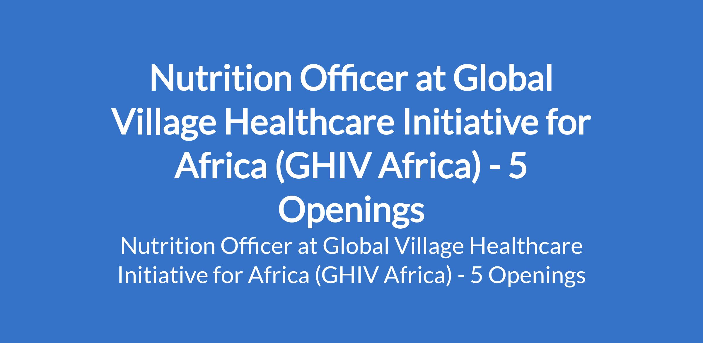 Global Village Healthcare Initiative for Africa (GHIV Africa) is recruiting to fill the position of: Nutrition Officer. The position is located in Batsari, Danmusa, Dutsinma, Kurfi and Safana LGAs - Katsina State. Interested candidates should possess a minimum of Bachelor's Degree in Nutrition, Public Health, Nursing, or a related field with 2-3 years of experience in implementing community-based nutrition programs, preferably with a focus on MIYCN.