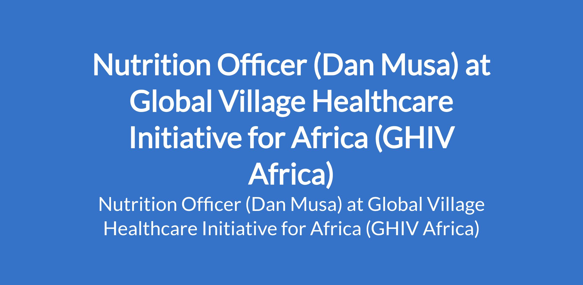 Global Village Healthcare Initiative for Africa (GHIV Africa) is recruiting to fill the position of: Nutrition Officer. The position is located in Dan Musa, Katsina State. Interested candidates should possess a minimum of a Bachelor's Degree in Nutrition, Public Health, Nursing, or a related field with 2-3 years of experience in implementing community-based nutrition programs, preferably with a focus on MIYCN.