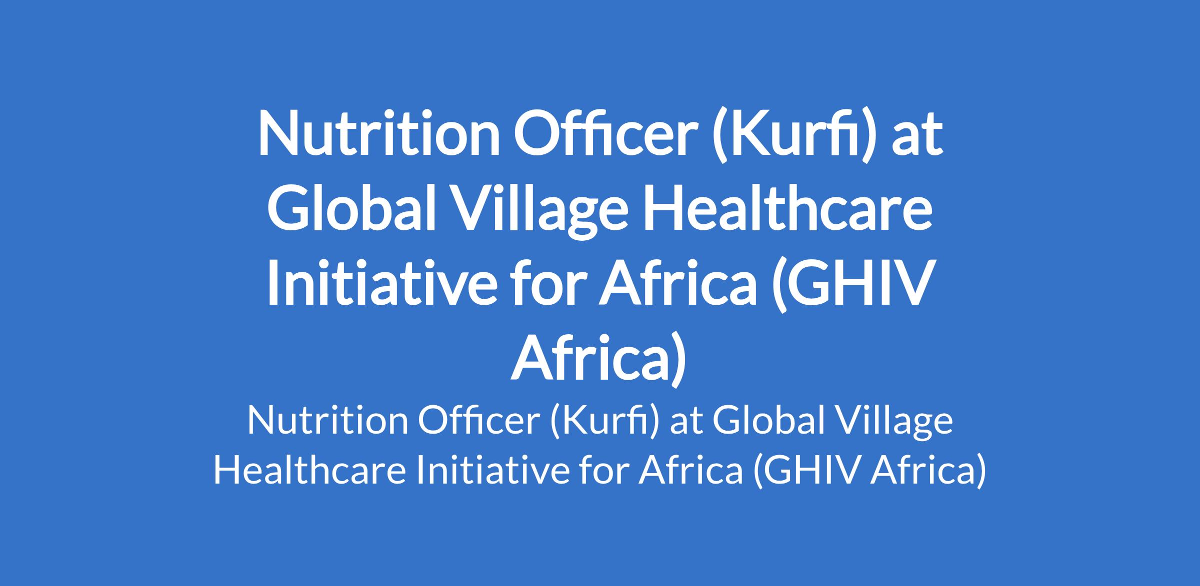 Global Village Healthcare Initiative for Africa (GHIV Africa) is recruiting to fill the position of: Nutrition Officer. The position is located in Kurfi, Katsina State. Interested candidates should possess a minimum of a Bachelor's Degree in Nutrition, Public Health, Nursing, or a related field with 2-3 years of experience in implementing community-based nutrition programs, preferably with a focus on MIYCN.