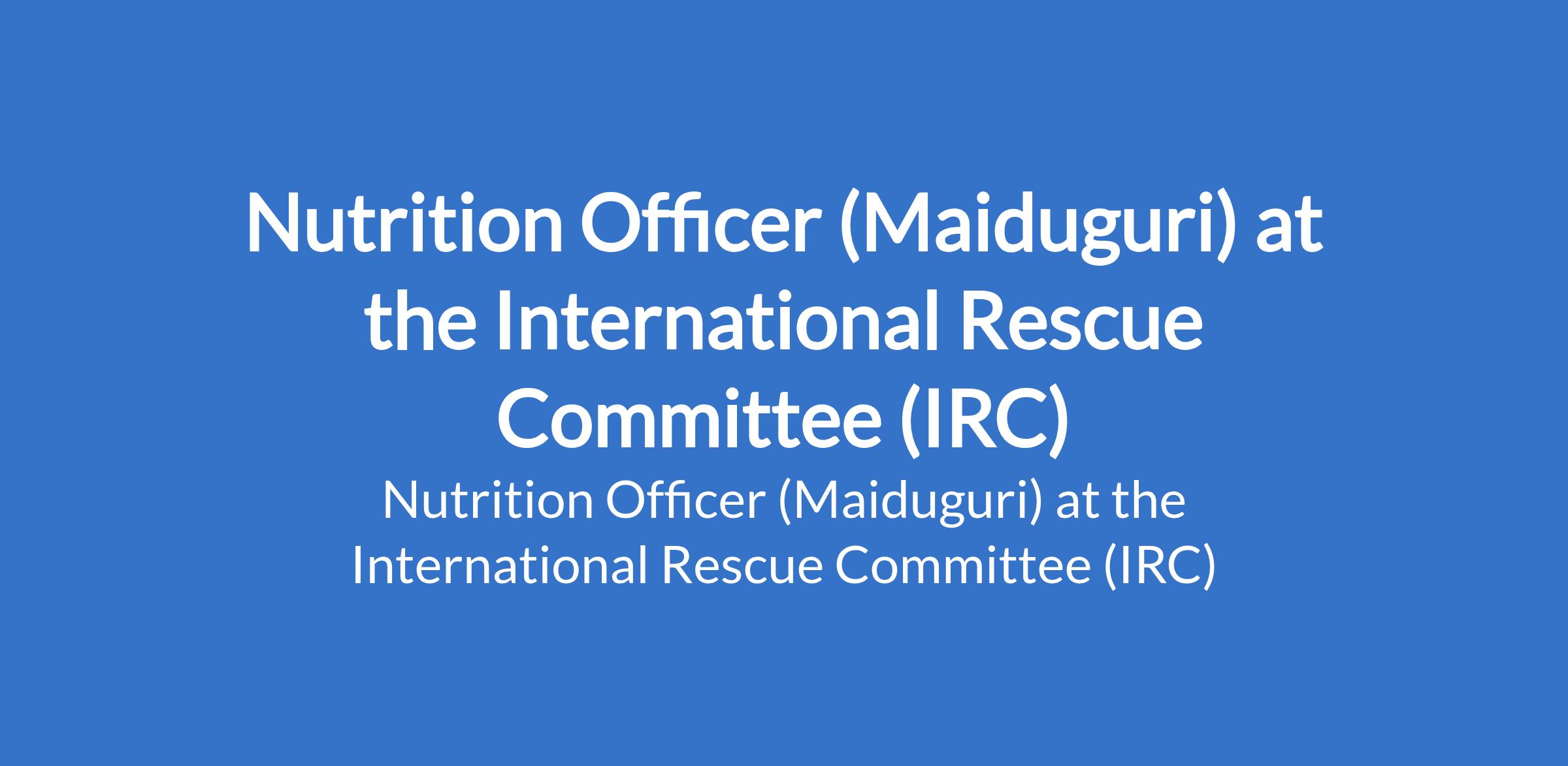 The International Rescue Committee (IRC) is recruiting to fill the position of: Nutrition Officer. The position is located in Maiduguri, Borno State. Interested candidates should possess a Health professional (Nutrition and dietetics, MD or RN with a MPH is preferred) with at least 3 years experience in managing and implementing Nutrition programs.