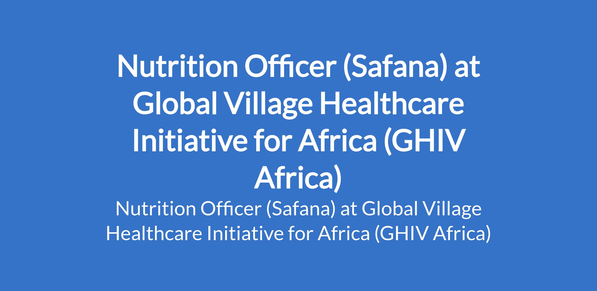 Global Village Healthcare Initiative for Africa (GHIV Africa) is recruiting to fill the position of: Nutrition Officer. The position is located in Safana, Katsina State. Interested candidates should possess a minimum of a Bachelor's Degree in Nutrition, Public Health, Nursing, or a related field with 2-3 years of experience in implementing community-based nutrition programs, preferably with a focus on MIYCN.