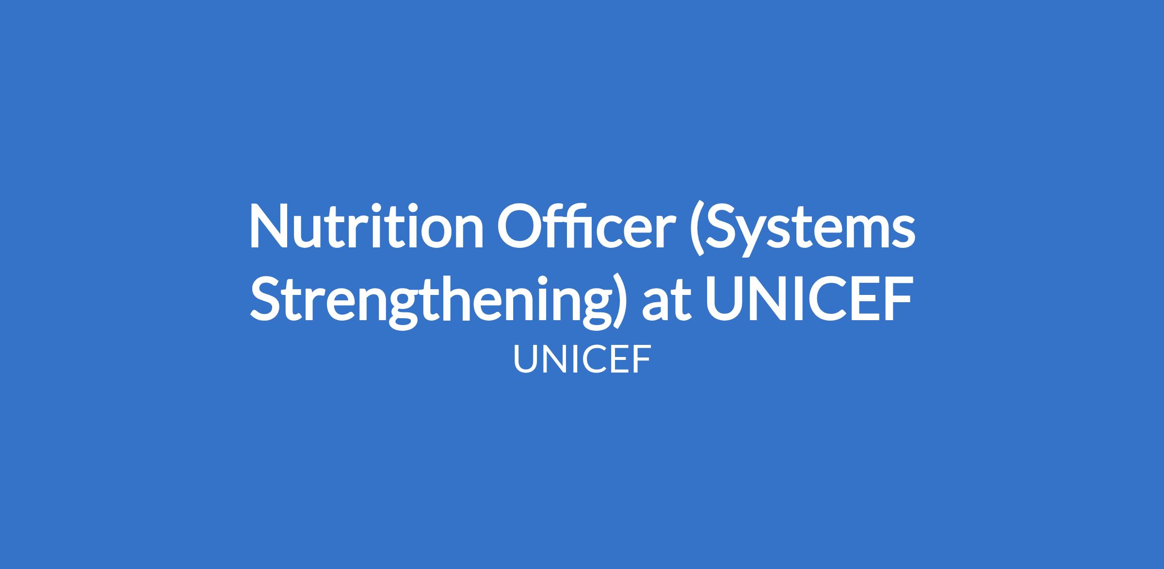 Nutrition Officer (Systems Strengthening) at UNICEF