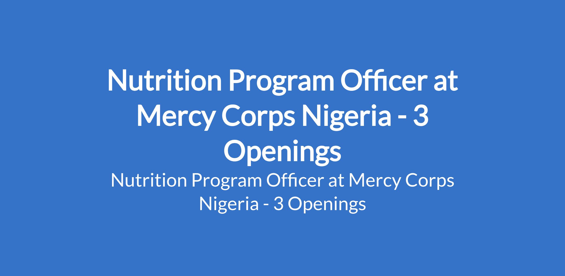 Mercy Corps Nigeria is recruiting to fill the position of: Nutrition Program Officer. The position is located in Yobeand Konduga & Ngala - Borno State. Interested candidates should possess a BA / B.Sc in Nutrition, Agriculture, or any related discipline with 2 years of experience working on the development, implementation, administration, and compliance of a field-based international development or humanitarian program; general gender and protection mainstreaming experience & knowledge required.