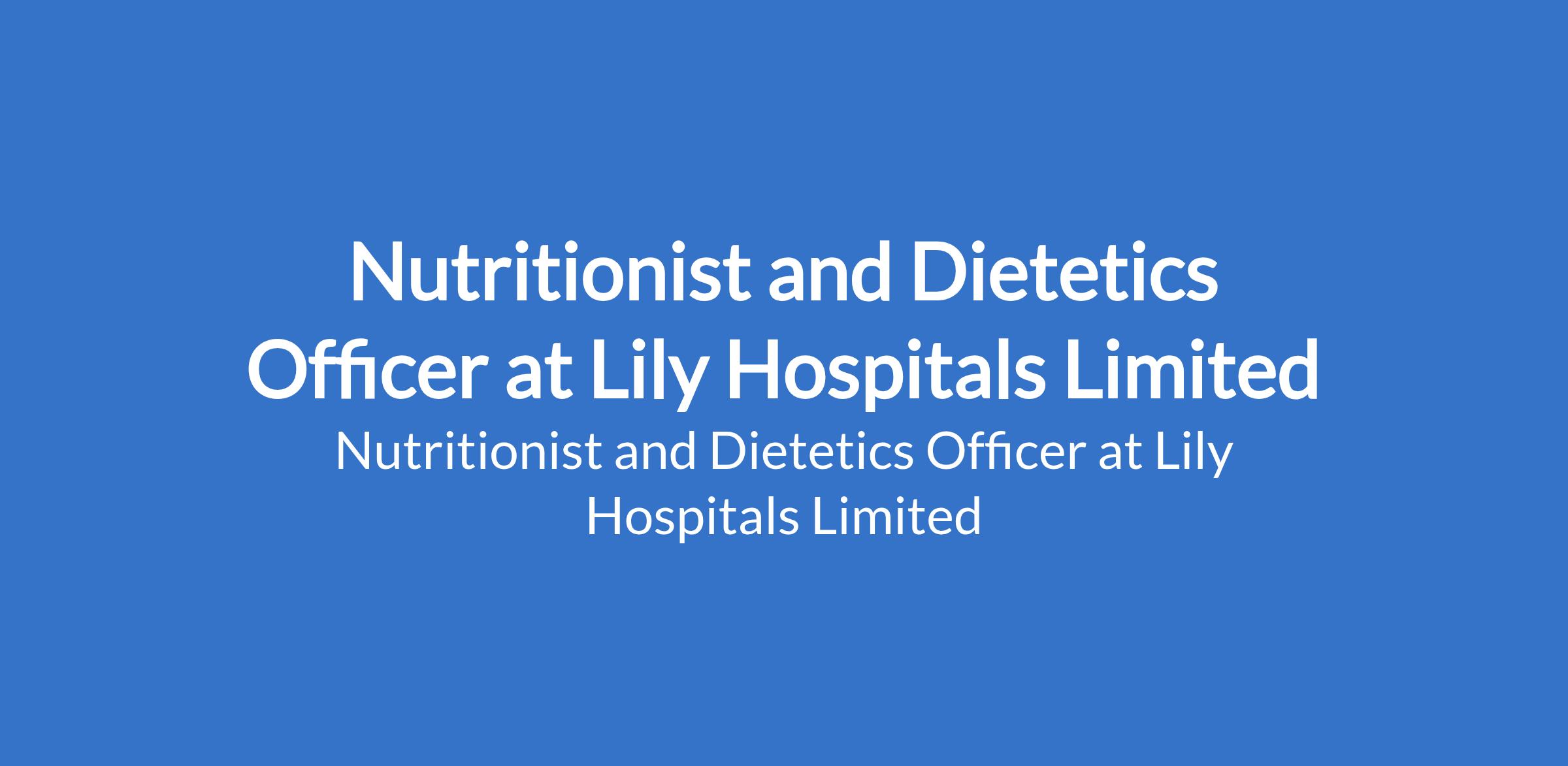 Lily Hospitals Limited is recruiting to fill the position of: Nutritionist and Dietetics Officer. The position is located in Warri, Delta State. Interested candidates should possess minimum of a B.Sc. in Human Nutrition and Dietetics with 2 - 5 years relevant work experience on a similar role preferably in the Health sector.