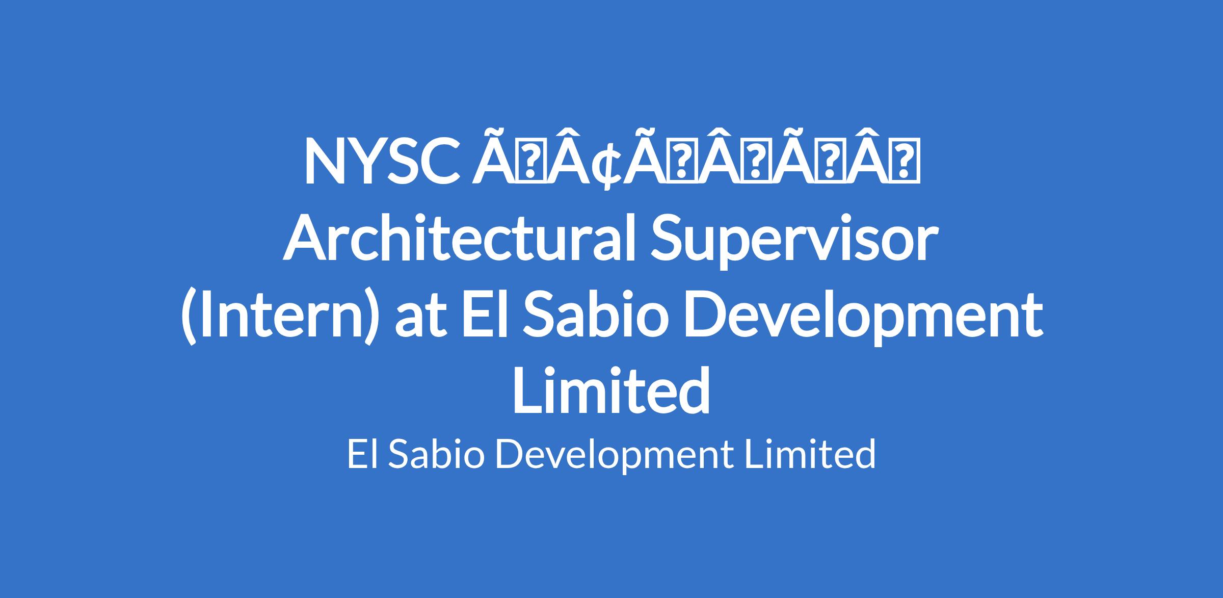 The Architectural Supervisor (NYSC) will support the supervision of architectural works on project sites, ensuring compliance with approved drawings, quality standards, and project timelines.