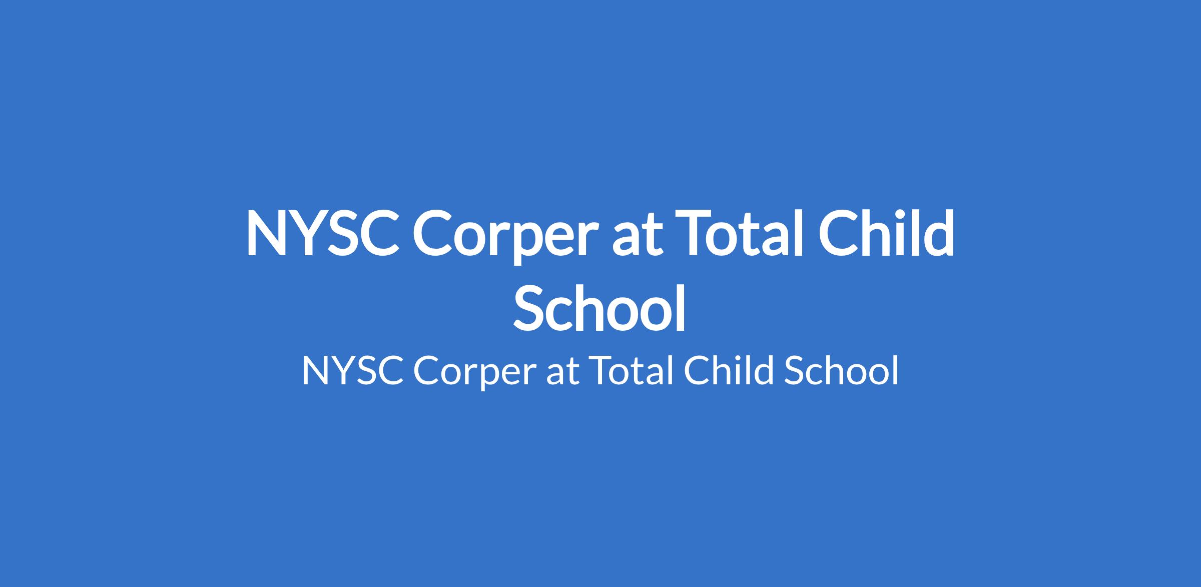 Total Child School is recruiting to fill the position of NYSC Corper. The position is located in Ikoyi, Lagos State. Interested candidates should possess relevant qualifications.