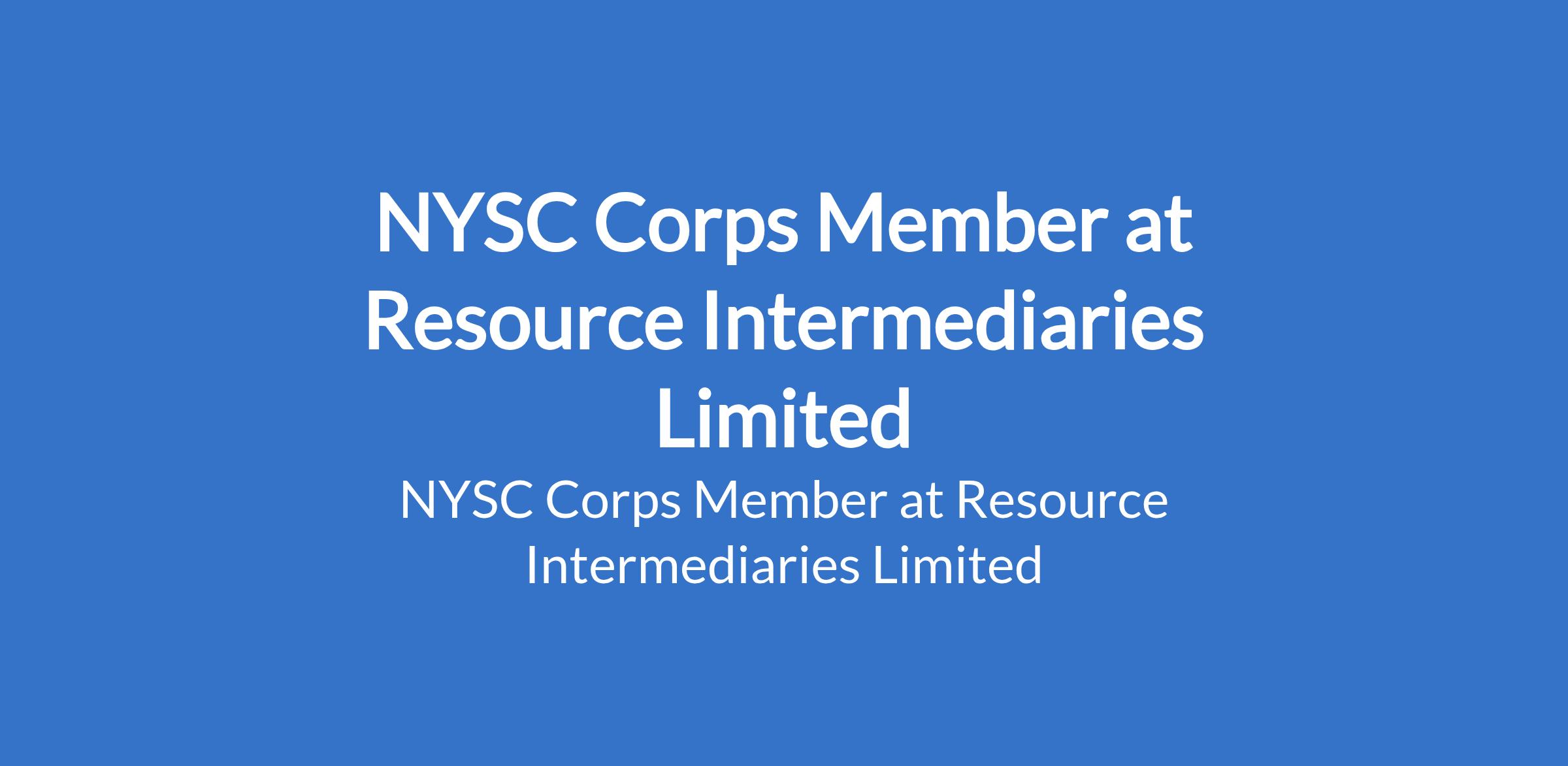 Resource Intermediaries Limited is recruiting to fill the position of: NYSC Corps Member. The position is located in Lagos State. Interested candidates should be current NYSC Corps Members, willing to learn and take initiative. Applicant must reside on the Island.