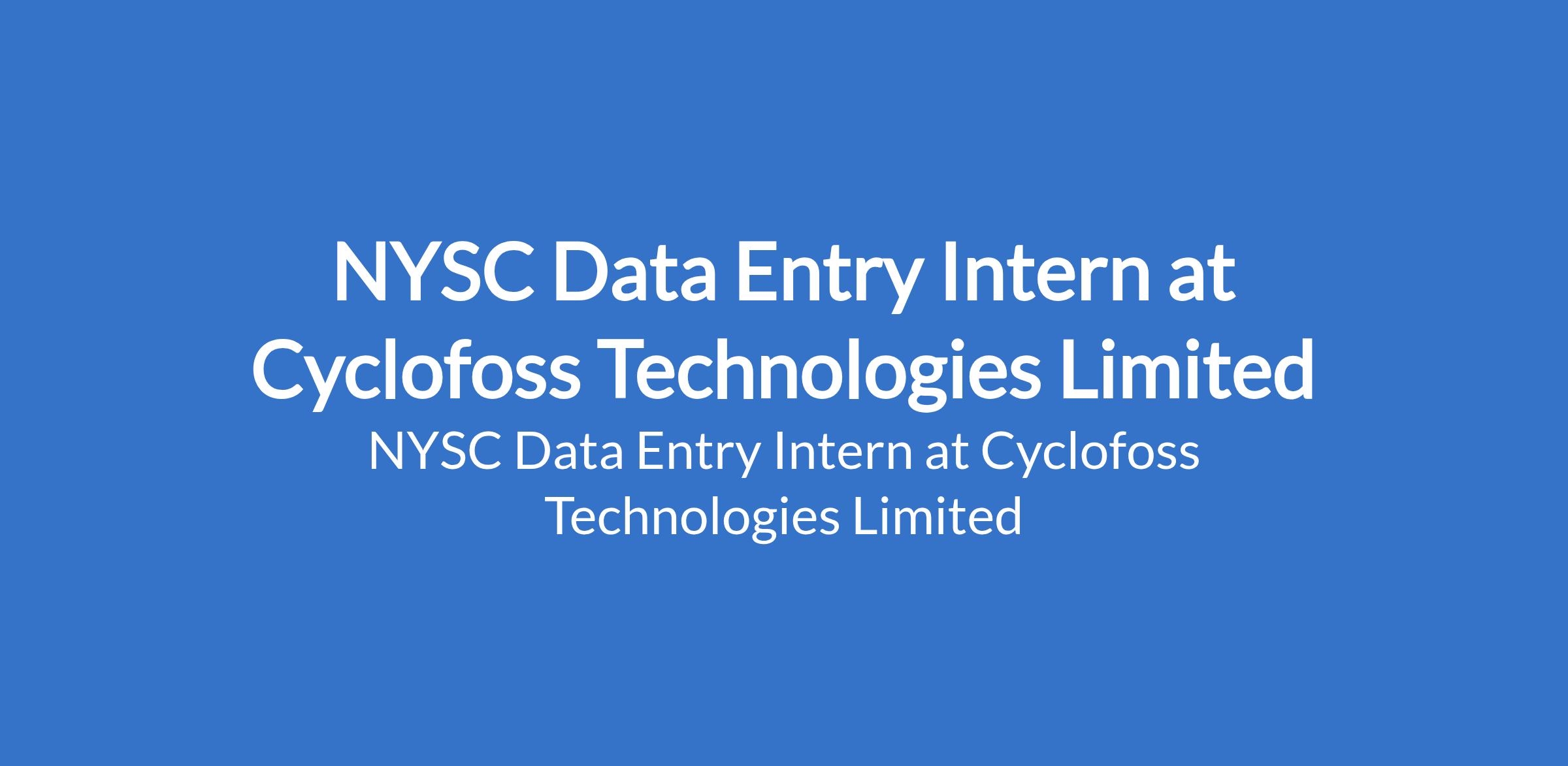 Cyclofoss Technologies Limited is recruiting to fill the position of: NYSC Data Entry Intern. The position is located in FESTAC Town, Lagos State. Allowance: N70,000 monthly. Interested candidates should possess an HND (Distinction or Upper Credit) / Degree (First Class or Second Class Upper (2.1)) and the ability to speedily enter data, strong analytical and problem-solving skills, and must be posted to Amuwo Odofin LGA and reside around FESTAC. FREE shared accommodation is available.