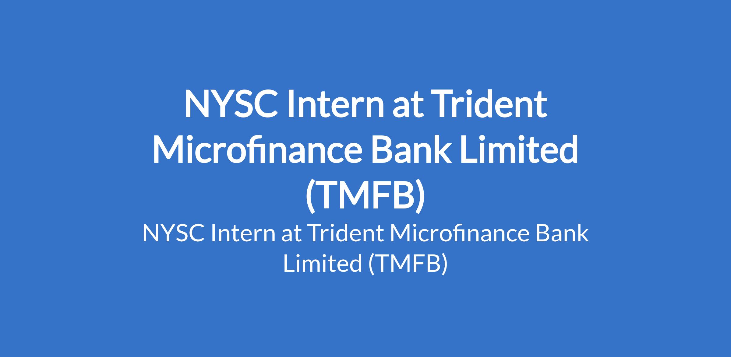 NYSC Intern at Trident Microfinance Bank Limited (TMFB)
