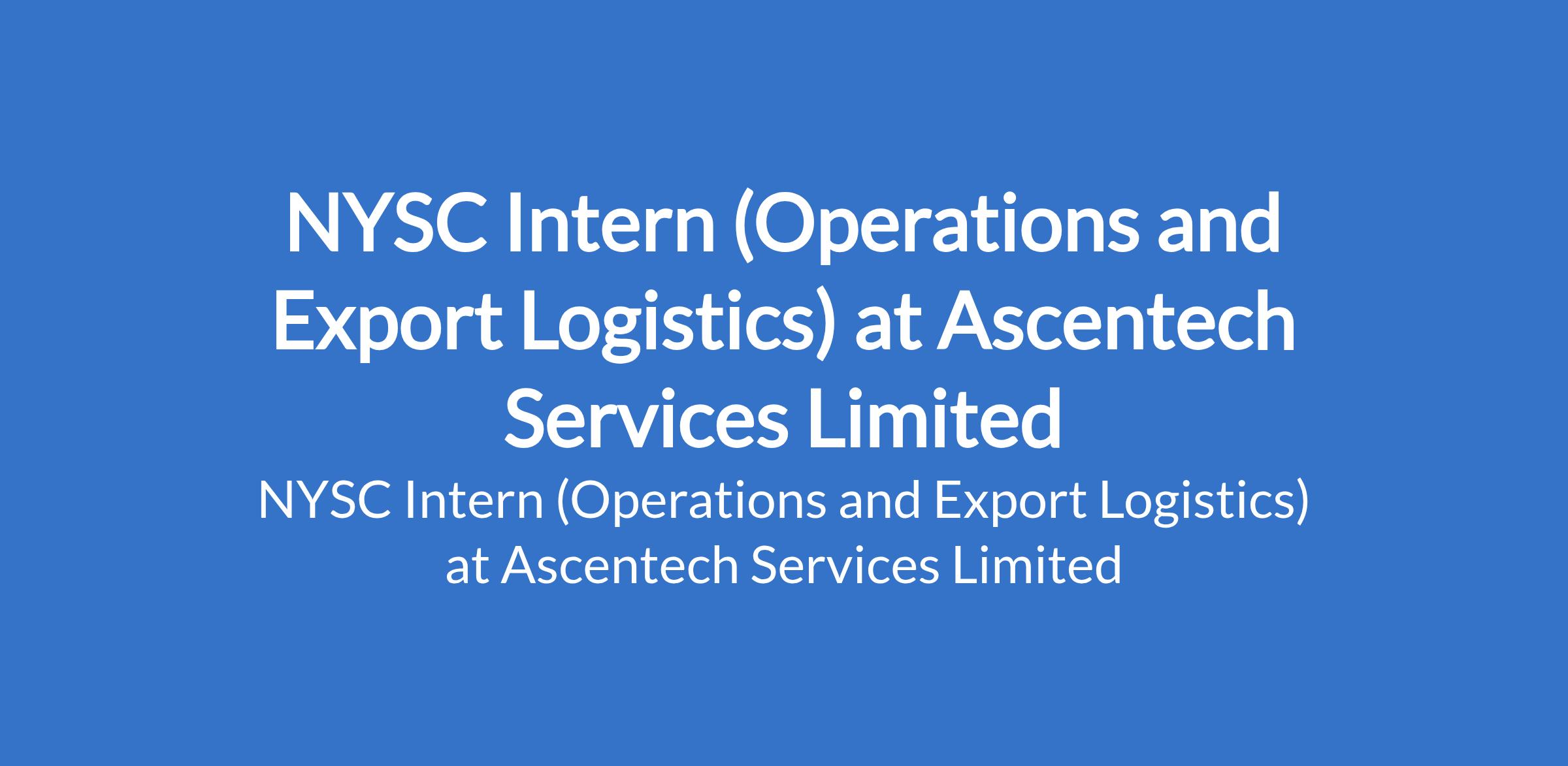Ascentech Services Limited is recruiting to fill the position of: NYSC Intern (Operations and Export Logistics). The position is located in Sagamu, Ogun State. Salary: N70,000 per month. Interested candidates should possess an HND or a B.Sc Degree in Accounting, Finance, Business Administration, Economics, Supply Chain Management, Logistics, Agricultural Economics, or a related field.