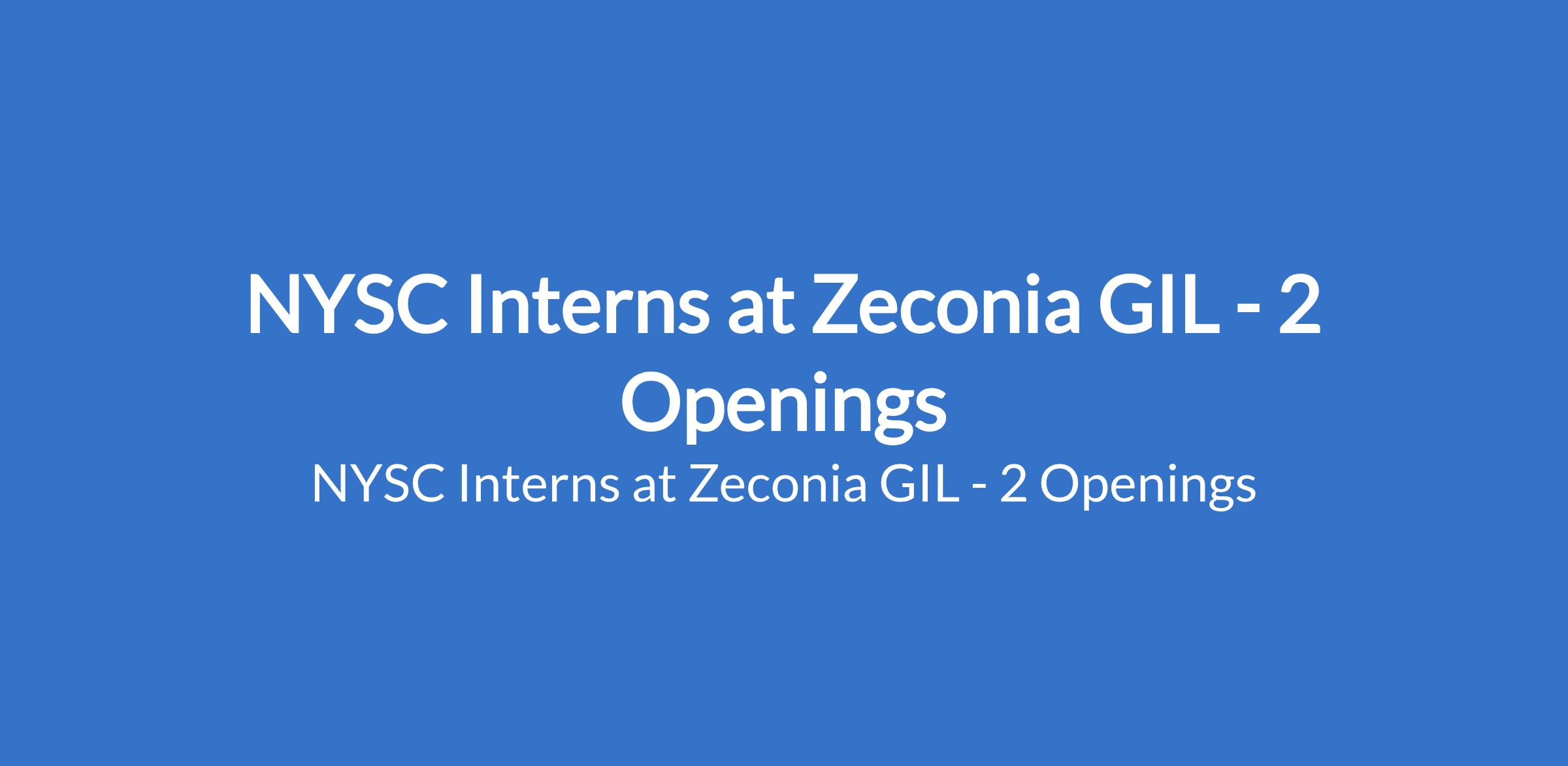 Zeconia GIL is recruiting to fill the position of: NYSC Intern. The position is located in Lagos and Rivers States. Interested candidates should possess a Bachelor's Degree in Petroleum Engineering and or Chemical Engineering with relevant work experience.