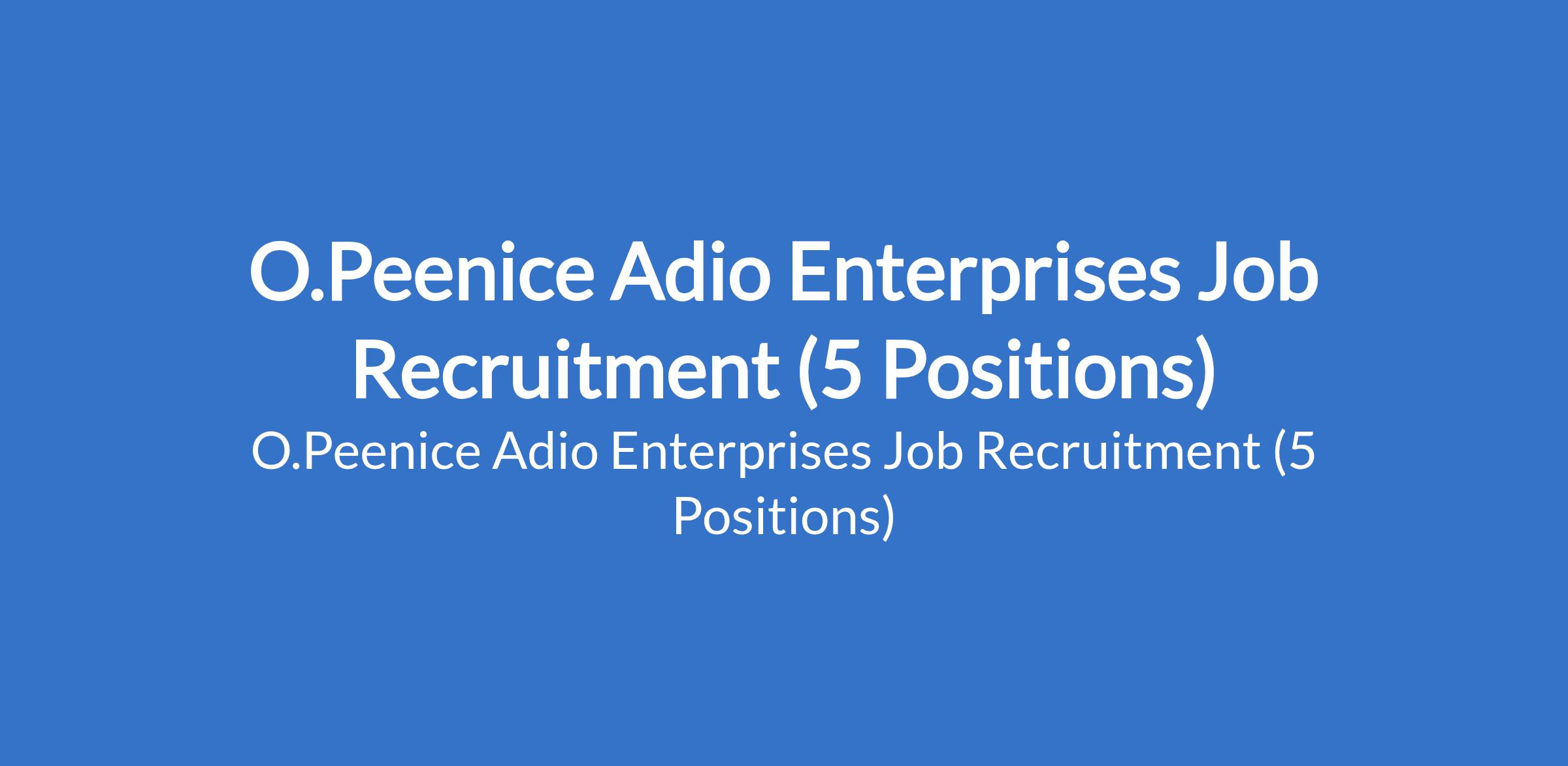 O.Peenice Adio Enterprises Job Recruitment (5 Positions)