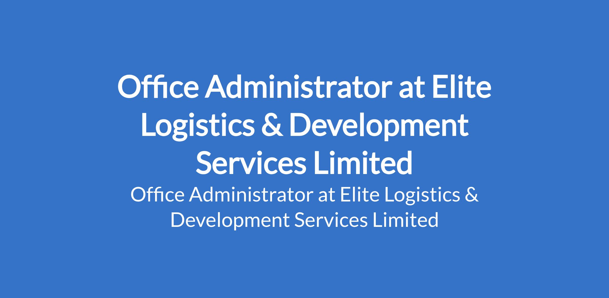Elite Logistics & Development Services Limited is recruiting to fill the position of: Office Administrator. The position is located in Lagos State. Interested candidates should possess a High School Diploma; BSc/BA in Office Administration or relevant field is preferred with 2-3 years experience.
