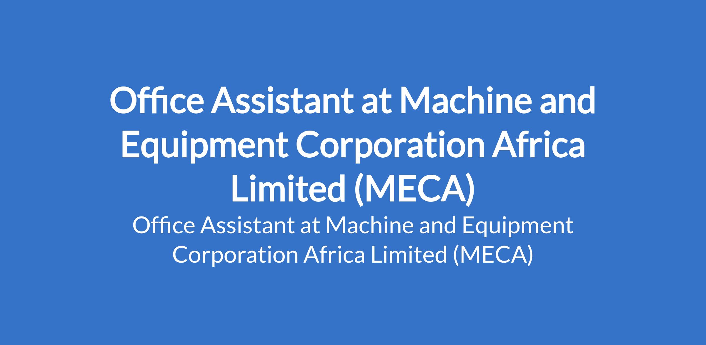 Machine and Equipment Corporation Africa Limited (MECA) is recruiting to fill the position of: Office Assistant. The position is located in Asokoro, Abuja. Interested candidates should possess a minimum of SSCE qualification with a minimum of 1 year experience in an administrative or similar role.