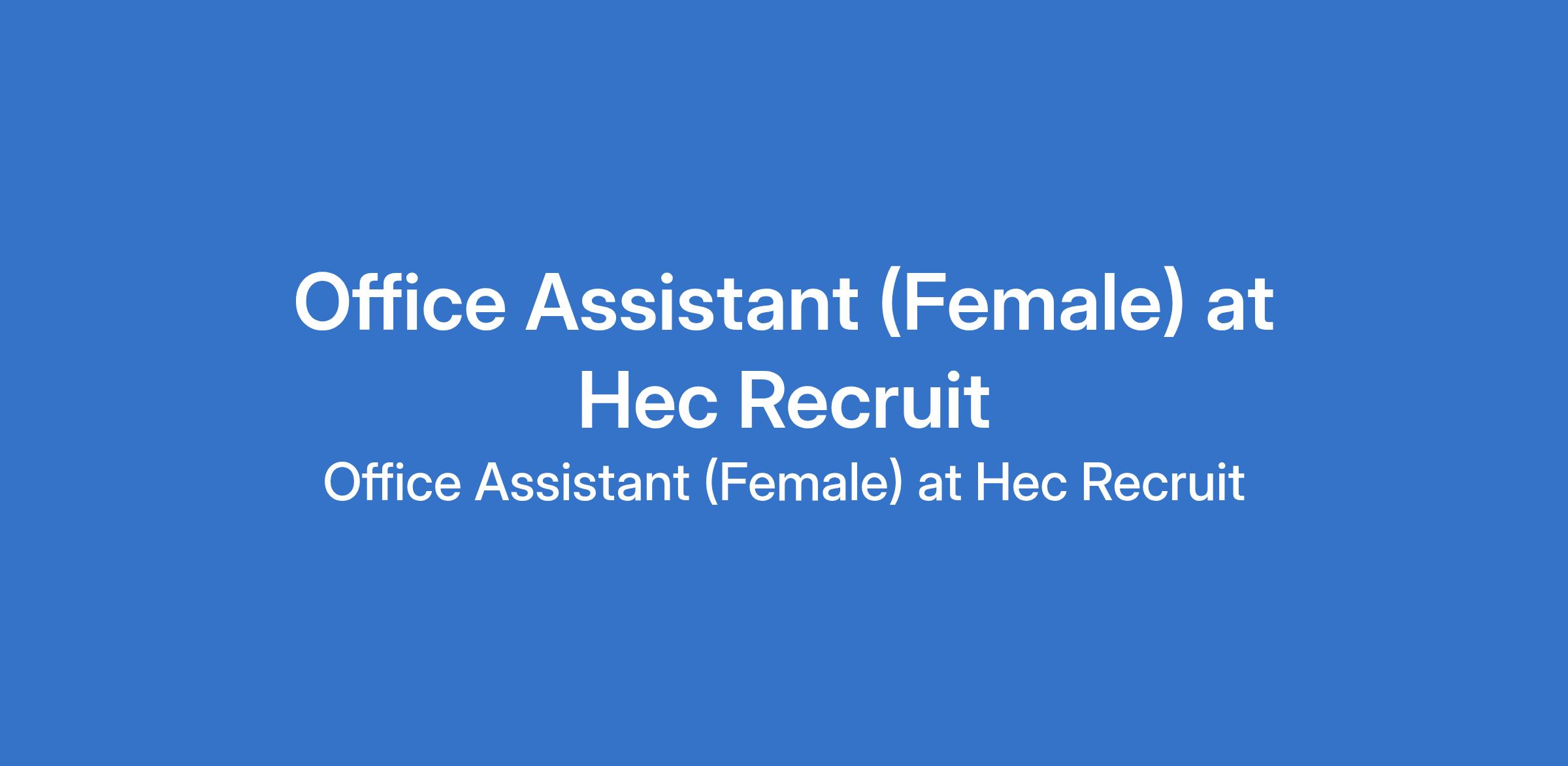 Office Assistant (Female) at Hec Recruit