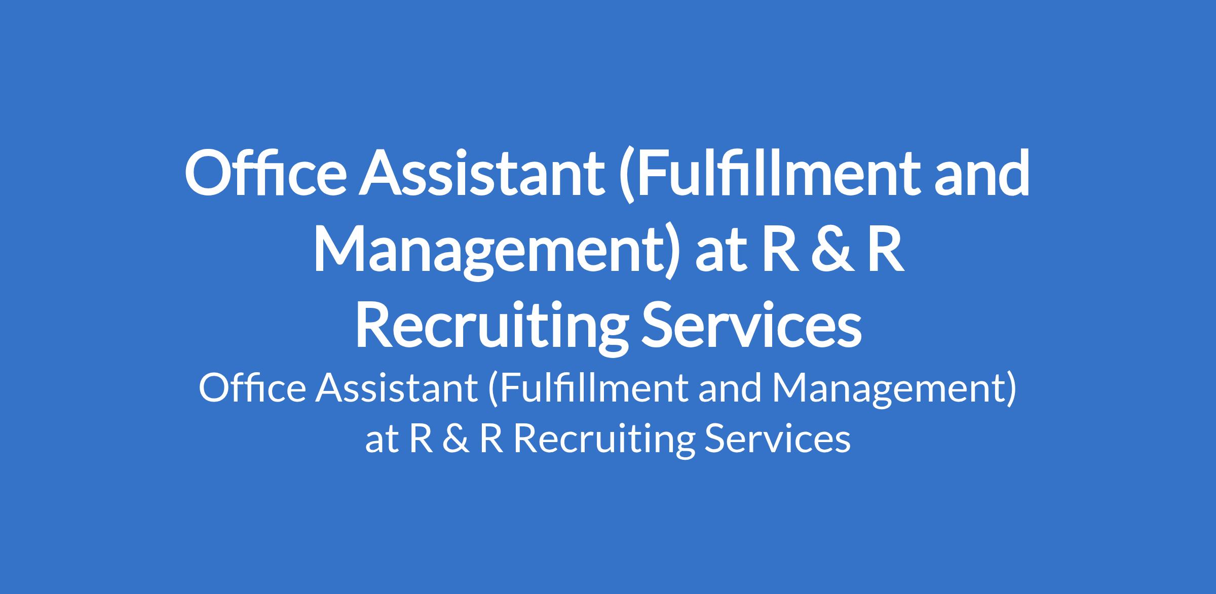 R & R Recruiting Services is recruiting to fill the position of: Office Assistant (Fulfillment and Management). The position is located in Akute, Lagos State. Salary: N80,000 - N100,000 per month. Interested candidates should possess relevant qualifications with 1-2 years of experience in an administrative or office support role.