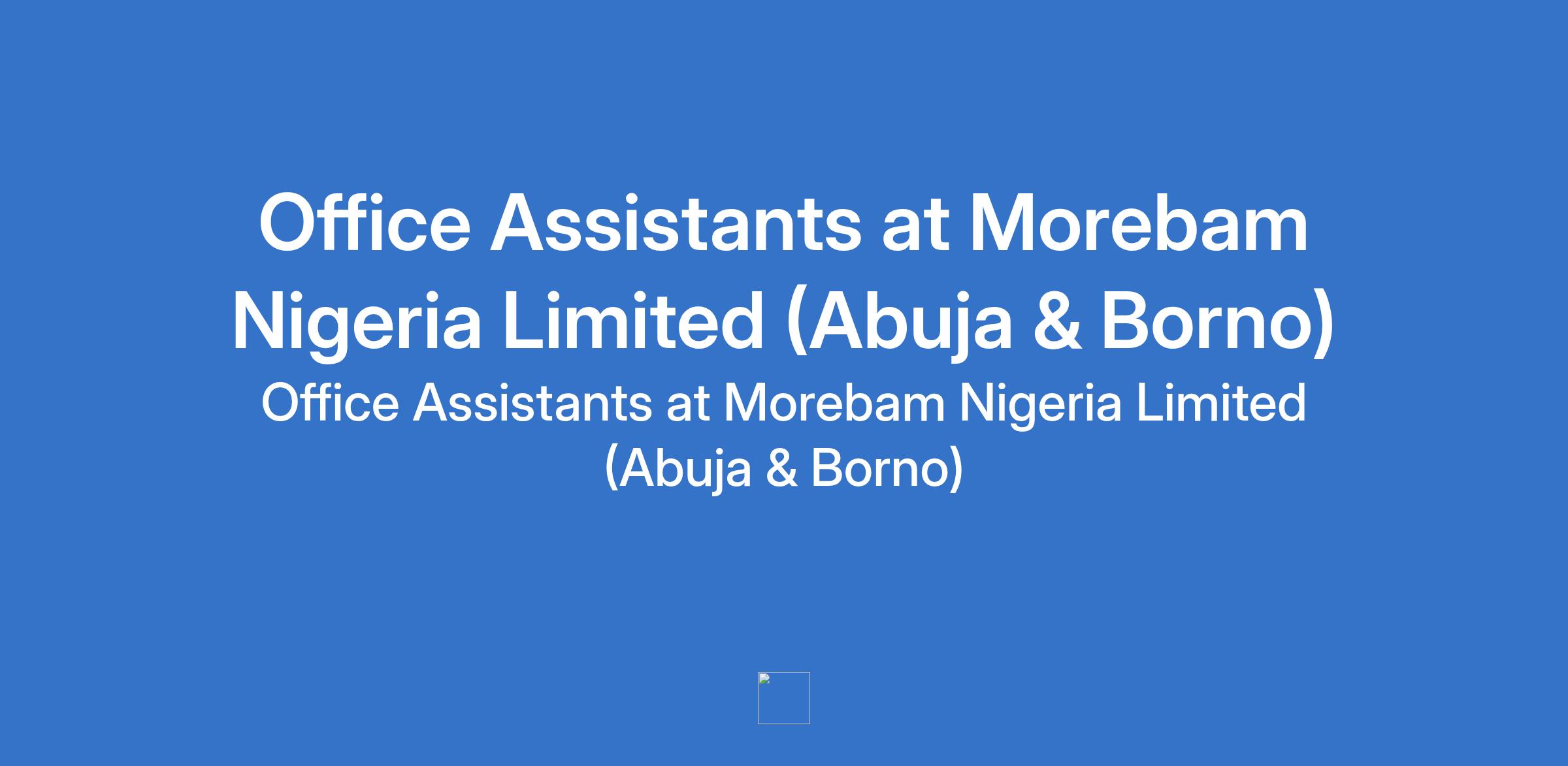Morebam Nigeria Limited is recruiting to fill the position of: Office Assistant. The position is located in Durumi, Abuja (FCT) and Borno State. Salary: N70,000 - N80,000 monthly. Interested candidates should possess relevant qualifications with 0-1 year experience.