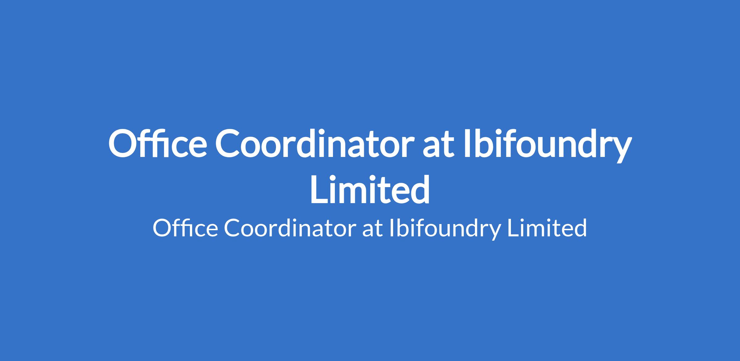 Ibifoundry Limited is recruiting to fill the position of: Office Coordinator. The position is located in Lagos State. Salary: N90,000 - N150,000 per month. Interested candidates should possess relevant qualifications with proven experience as an office coordinator or in a similar role.