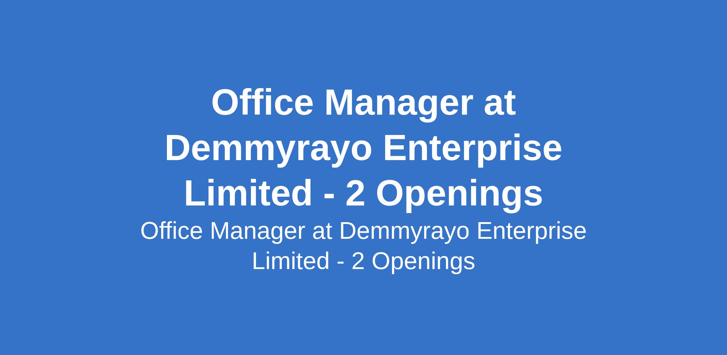 Demmyrayo Enterprise Limited is recruiting to fill the position of: Office Manager. The position is located in Maryland, Lagos and Osun States. Salary: N180,000 - N220,000 per month. Interested candidates should possess a High School Degree; additional qualification as an Administrative assistant or Secretary will be a plus.