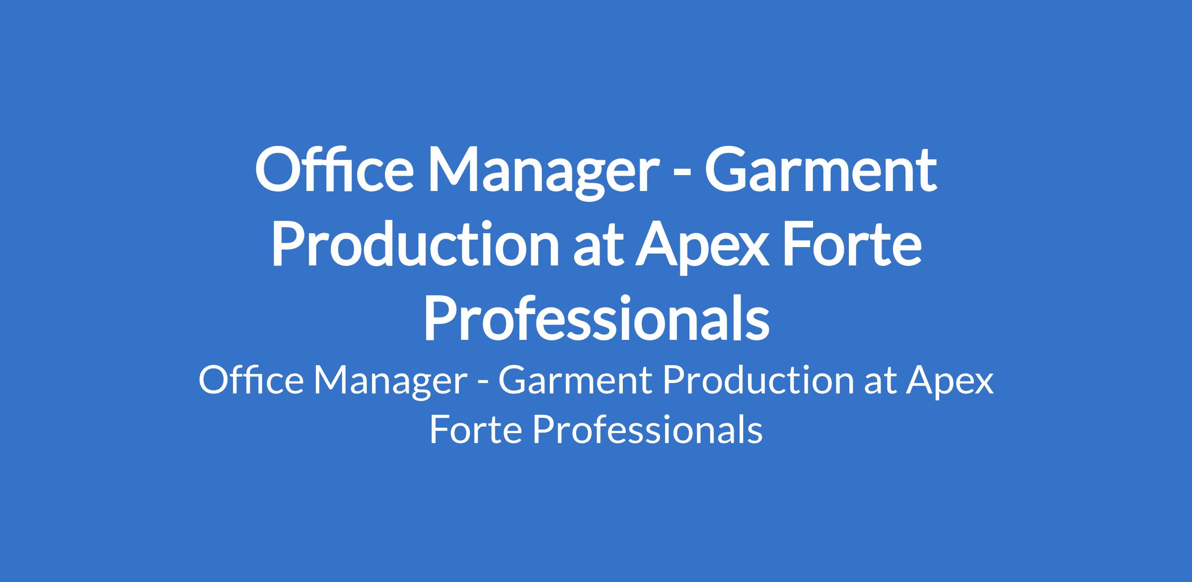 Apex Forte Professionals is recruiting to fill the position of: Office Manager - Garment Production. The position is located in Ilasa Maja - Oshodi Expressway, Lagos State. Salary: N270,000 - N300,000 monthly. Interested candidates should possess a Bachelors Degree in Business Administration, Accounting, HR, or a related field with a minimum of 5 years of relevant experience in office, operations, or administrative management (preferably in a manufacturing setting).