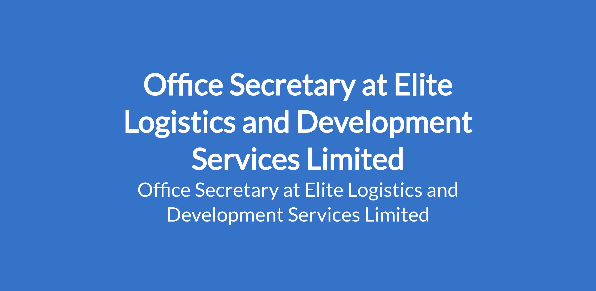 Elite Logistics and Development Services Limited is recruiting to fill the position of: Office Secretary. The position is located in Lagos State. Salary: N120,000 - N180,000 per month. Interested candidates should possess a High School Diploma with proven work experience as a Secretary or Administrative Assistant.