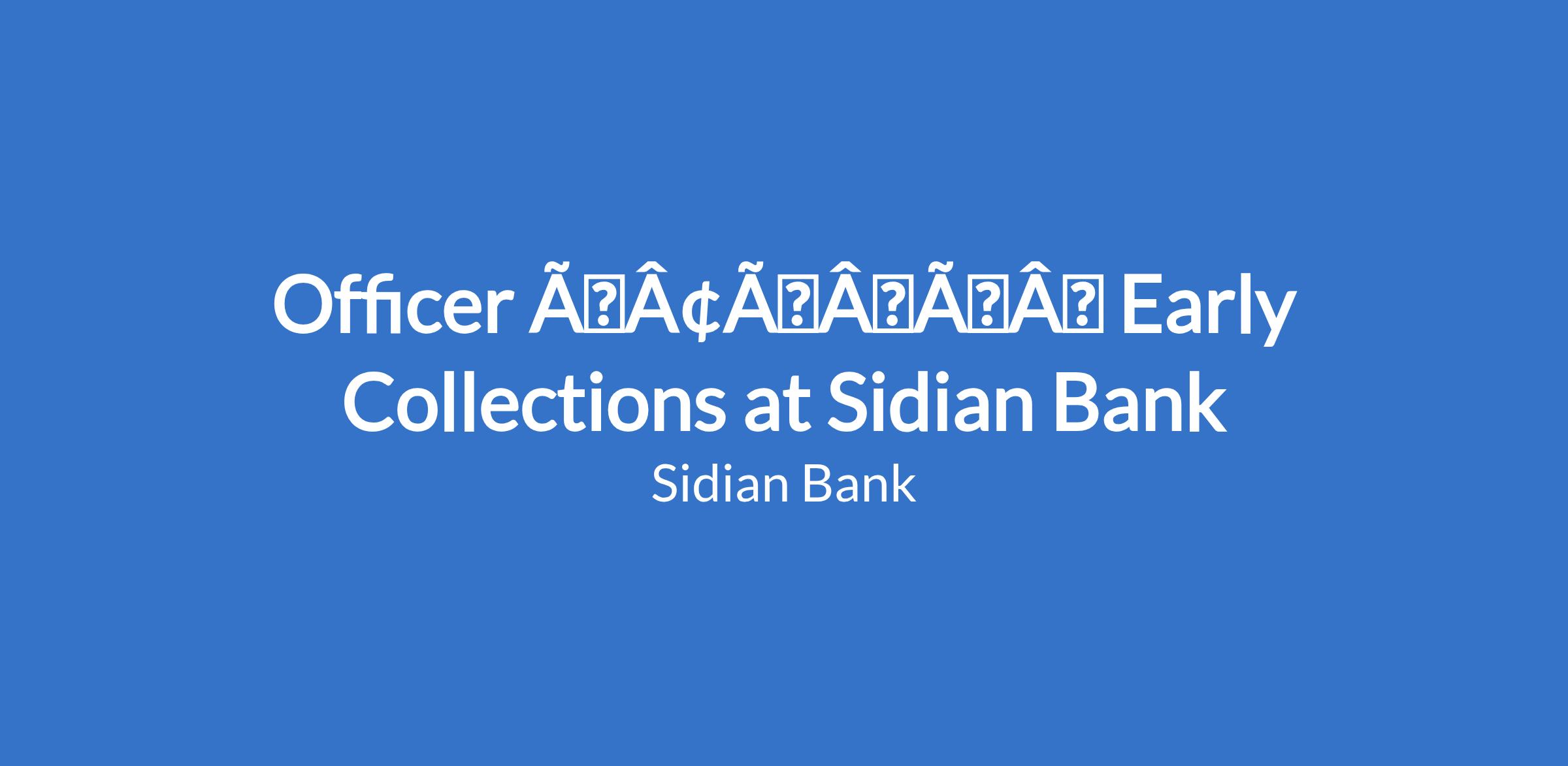 Officer âÃÂàEarly Collections at Sidian Bank