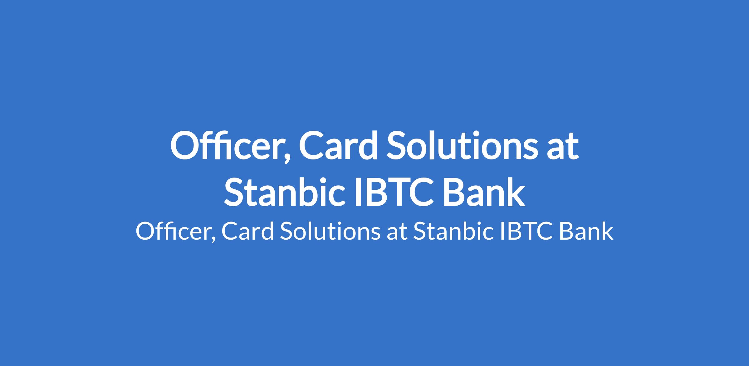 Stanbic IBTC Bank is recruiting to fill the position of: Officer, Card Solutions. The position is located in Walter Carrington Crescent, Lagos State. Interested candidates should possess a First Degree in Business, Finance, Economics, Technology, or related fields with 47 years in card operations, product support, banking operations, or digital channels.