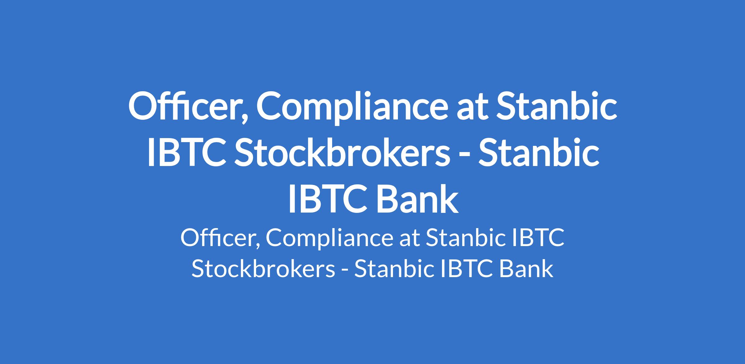Stanbic IBTC Stockbrokers, a subisidiary of Stanbic IBTC Bank is recruiting to fill the position of: Officer, Compliance. The position is located in Walter Carrington Crescent, Lagos State. Interested candidates should possess a BSc Degree in Finance and Accounting or related fields with 3 - 4 years experience in financial services.
