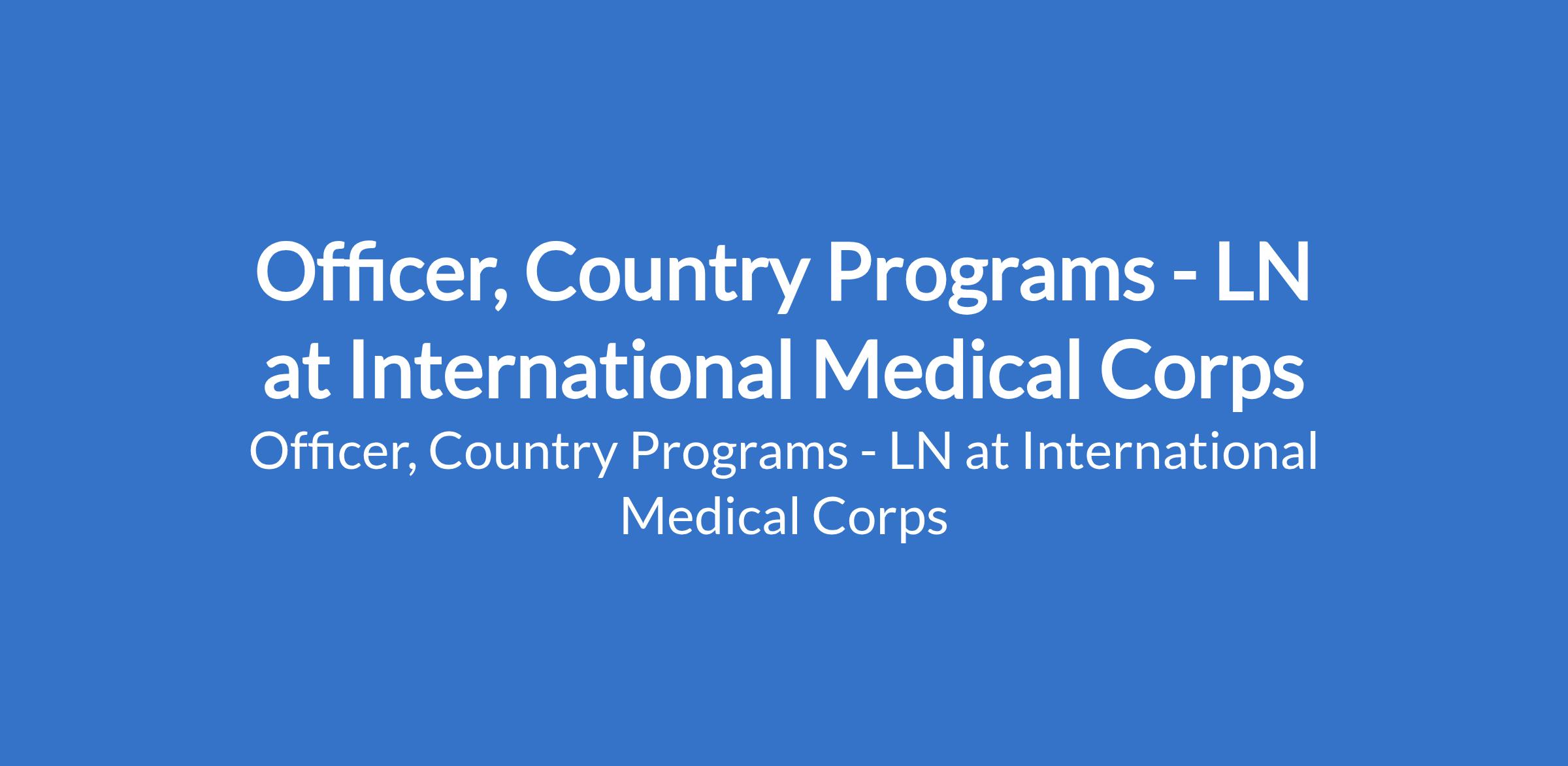 International Medical Corps (IMC) is recruiting to fill the position of: Officer, Country Programs - LN. The position is located in Kano State. Interested candidates should possess a Master's Degree in Public Health, International Development and/or a relevant field of study with 2 - 3 years' experience in program design and evaluation, of which at least one year in developing countries or resource deprived environment or equivalent combination of education and experience.