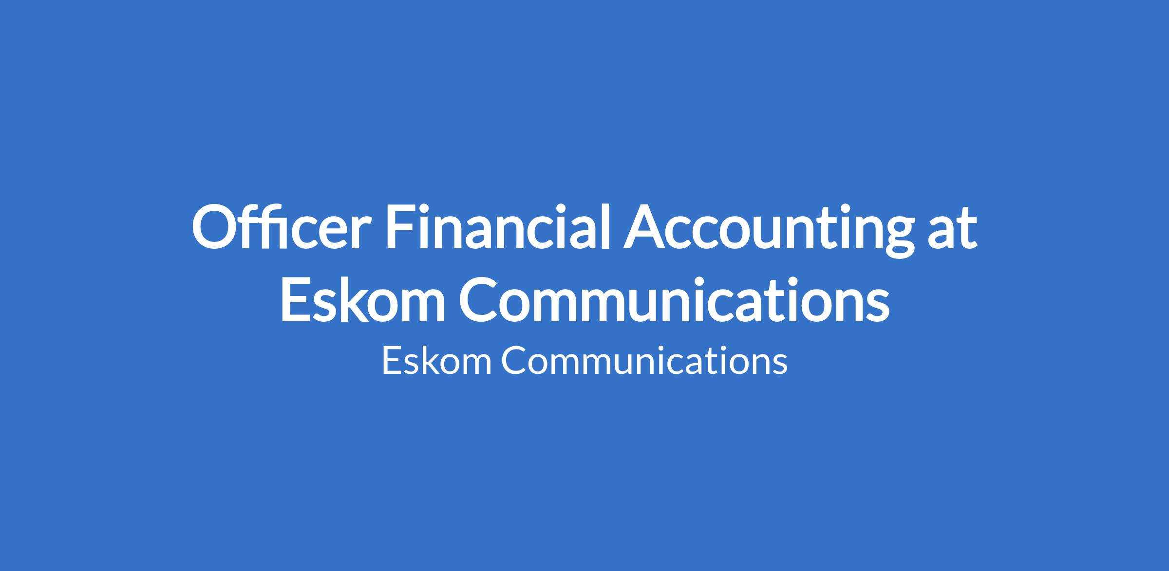 Position: Officer Financial Accounting Position/Task Grade: T12 Area of specialization: To provide a professional reporting and accounting support service to ensure compliance with international financial reporting standards (IFRS), applicable legislation, Eskom policies and procedures in support of sound financial control and discipline. Department: Finance Business Unit: Finance Location: MWP