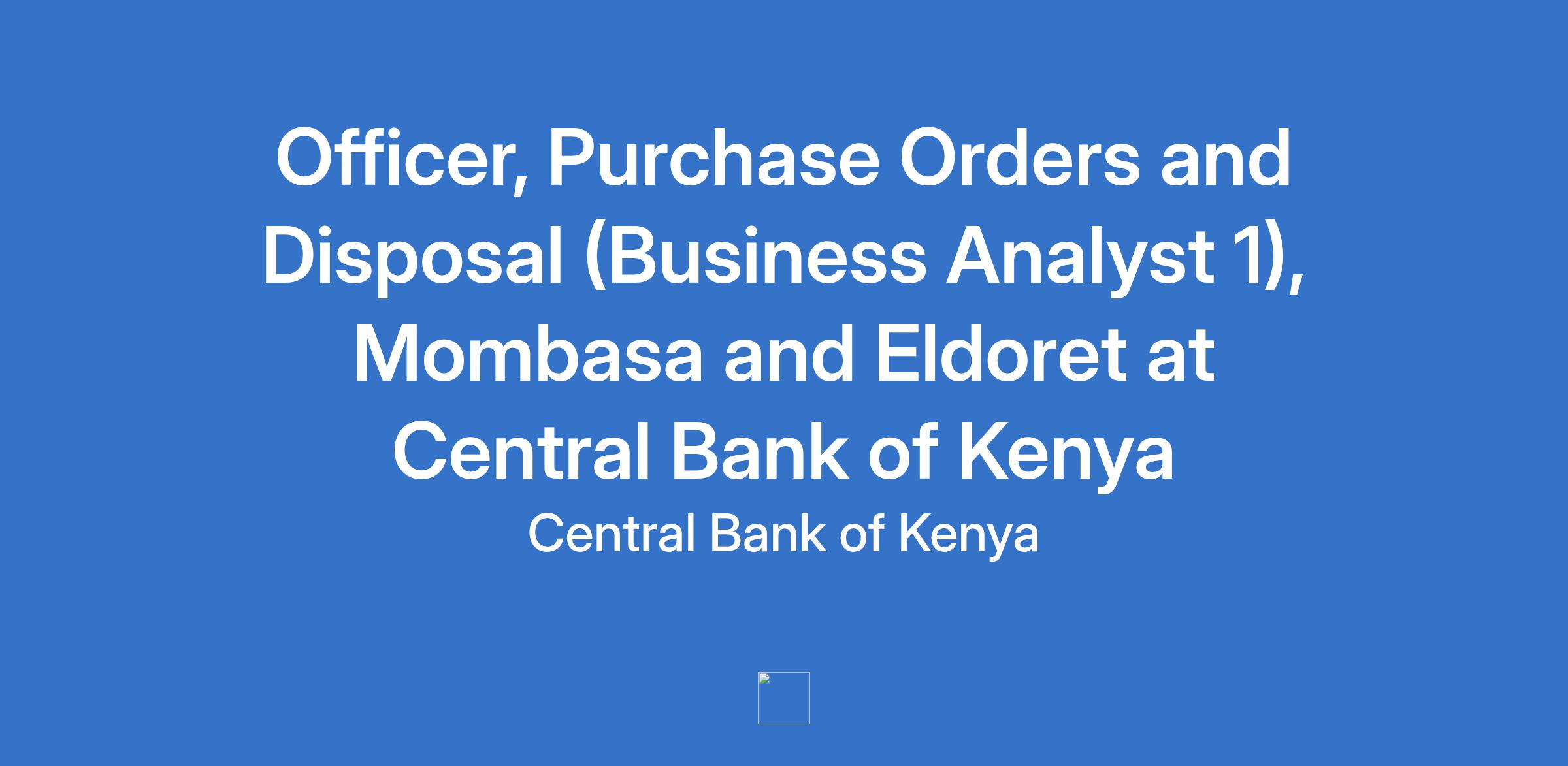 Officer, Purchase Orders and Disposal (Business Analyst 1), Mombasa and Eldoret at Central Bank of Kenya