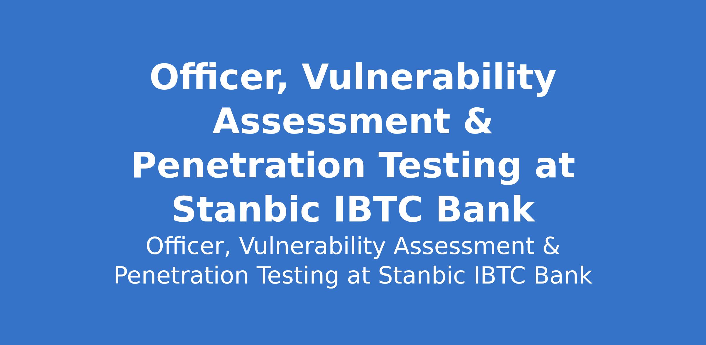 Stanbic IBTC Bank is recruiting to fill the position of: Officer, Vulnerability Assessment & Penetration Testing. The position is located in Walter Carrington Crescent, Lagos State. Interested candidates should possess a Bachelors Degree in Computer Science, Information Technology, Cybersecurity, or a related field with 3years extensive knowledge of Security Operation, Endpoint management, Network Security and Vulnerability management.