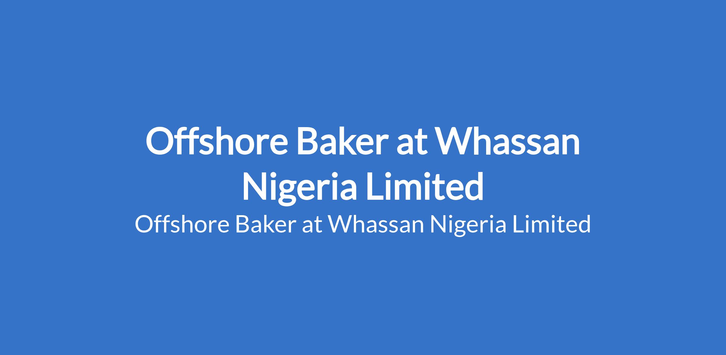 Whassan Nigeria Limited is recruiting to fill the position of: Offshore Baker. The position is located in Port Harcourt, Rivers State. Salary: N110,000 - N139,000 monthly. Interested candidates should possess an SSCE / GCE / NECO qualification with 3 - 5 years experience.