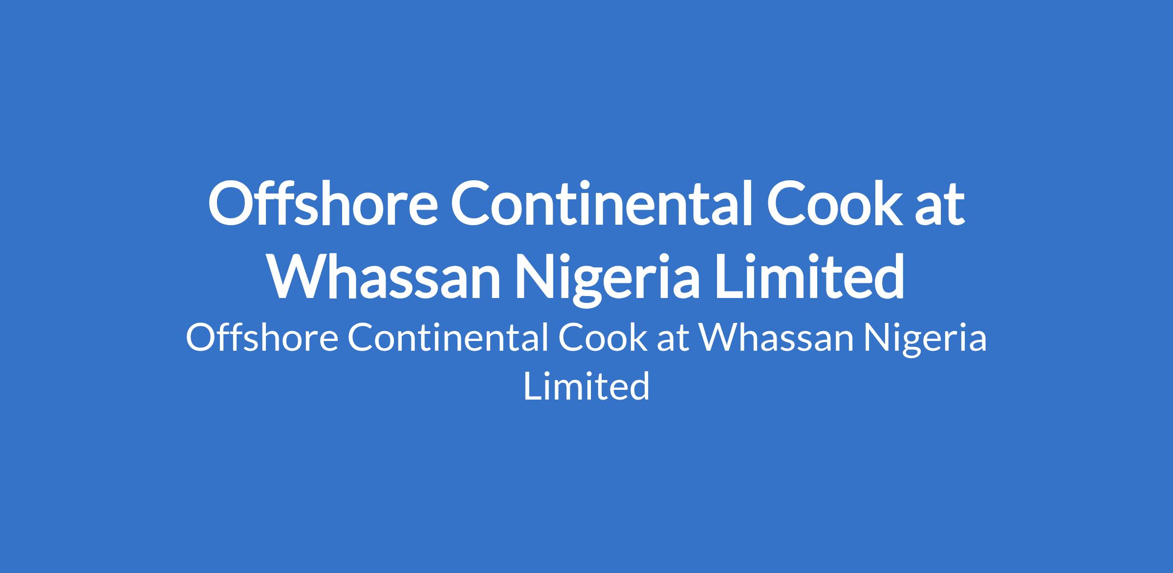 Whassan Nigeria Limited is recruiting to fill the position of: Offshore Continental Cook. The position is located in Port Harcourt, Rivers State. Salary: N350,000 - N390,000 per month. Interested candidates should possess a B.Sc Degree with 3 - 5 years experience.