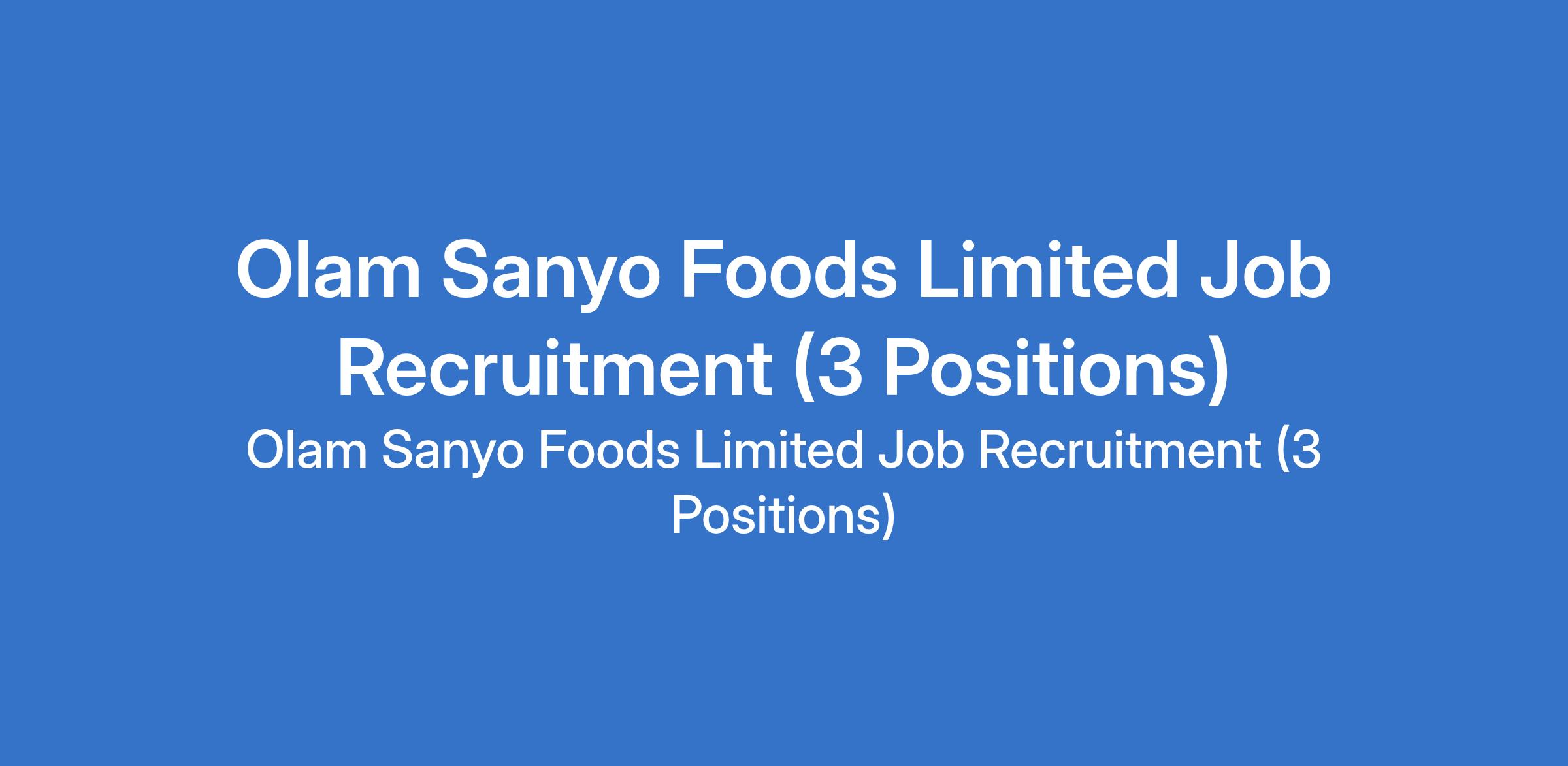 Olam Sanyo Foods Limited Job Recruitment (3 Positions)