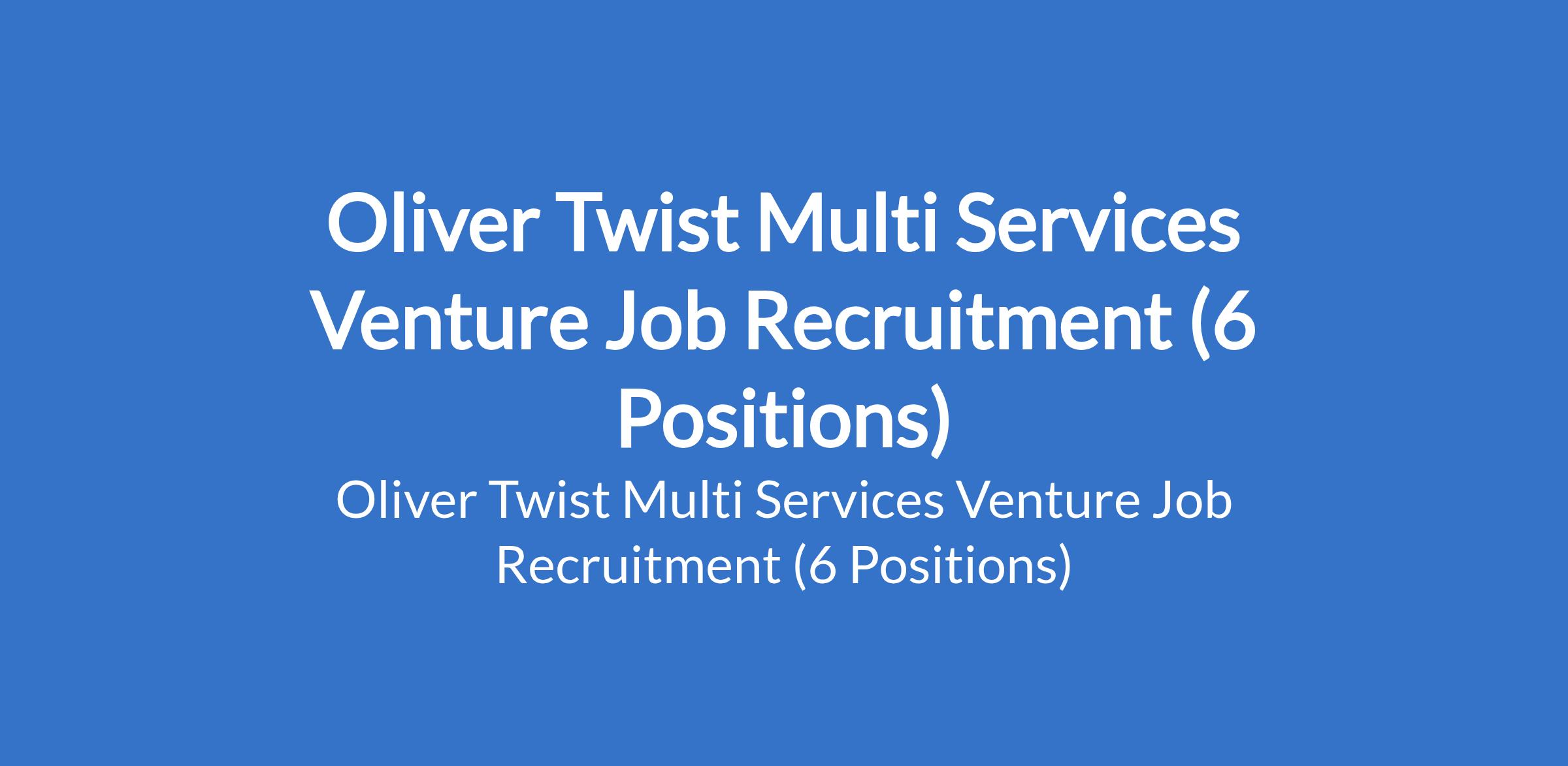 Oliver Twist Multi Services Venture Job Recruitment (6 Positions)