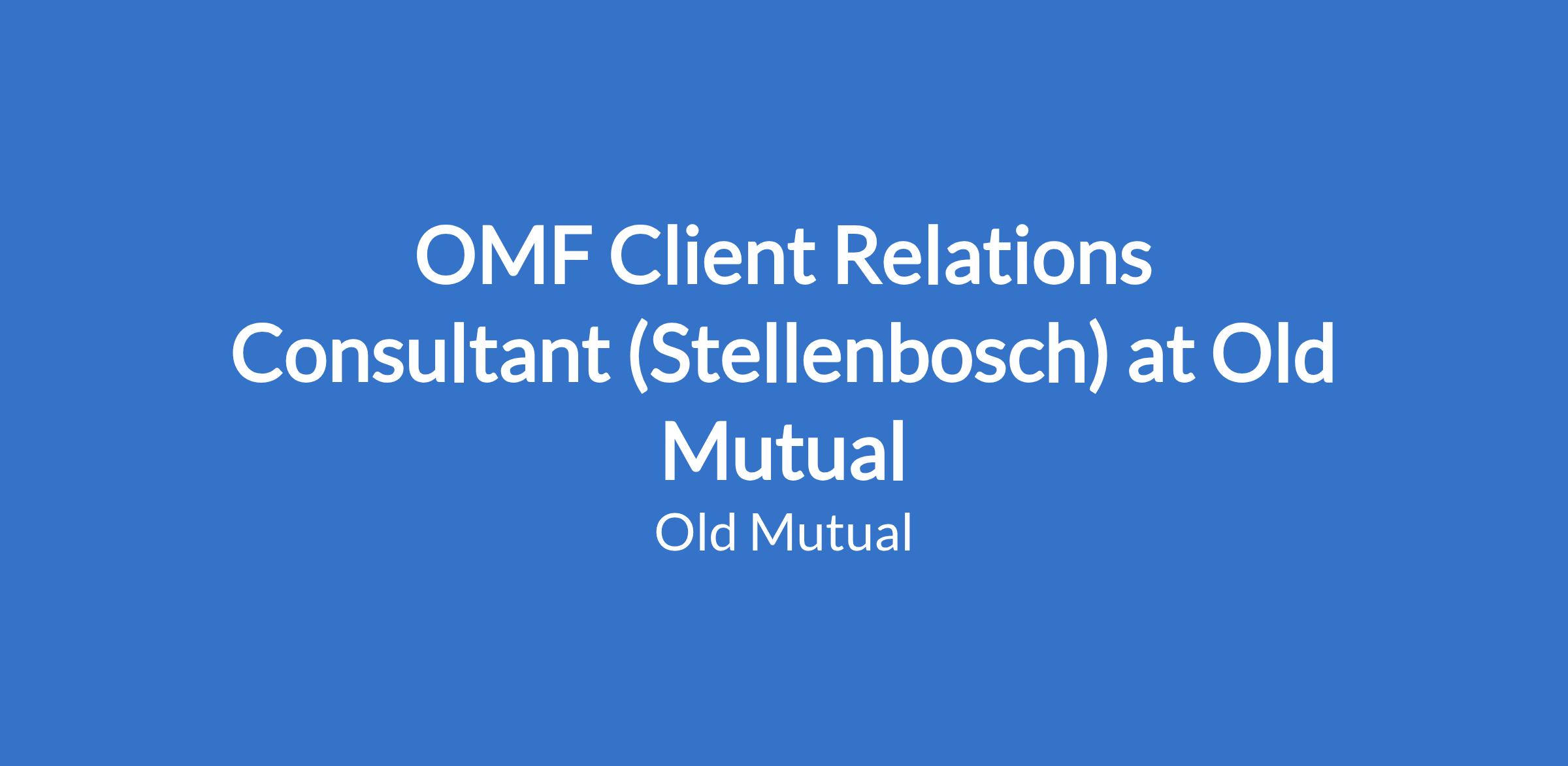 OMF Client Relations Consultant (Stellenbosch) at Old Mutual