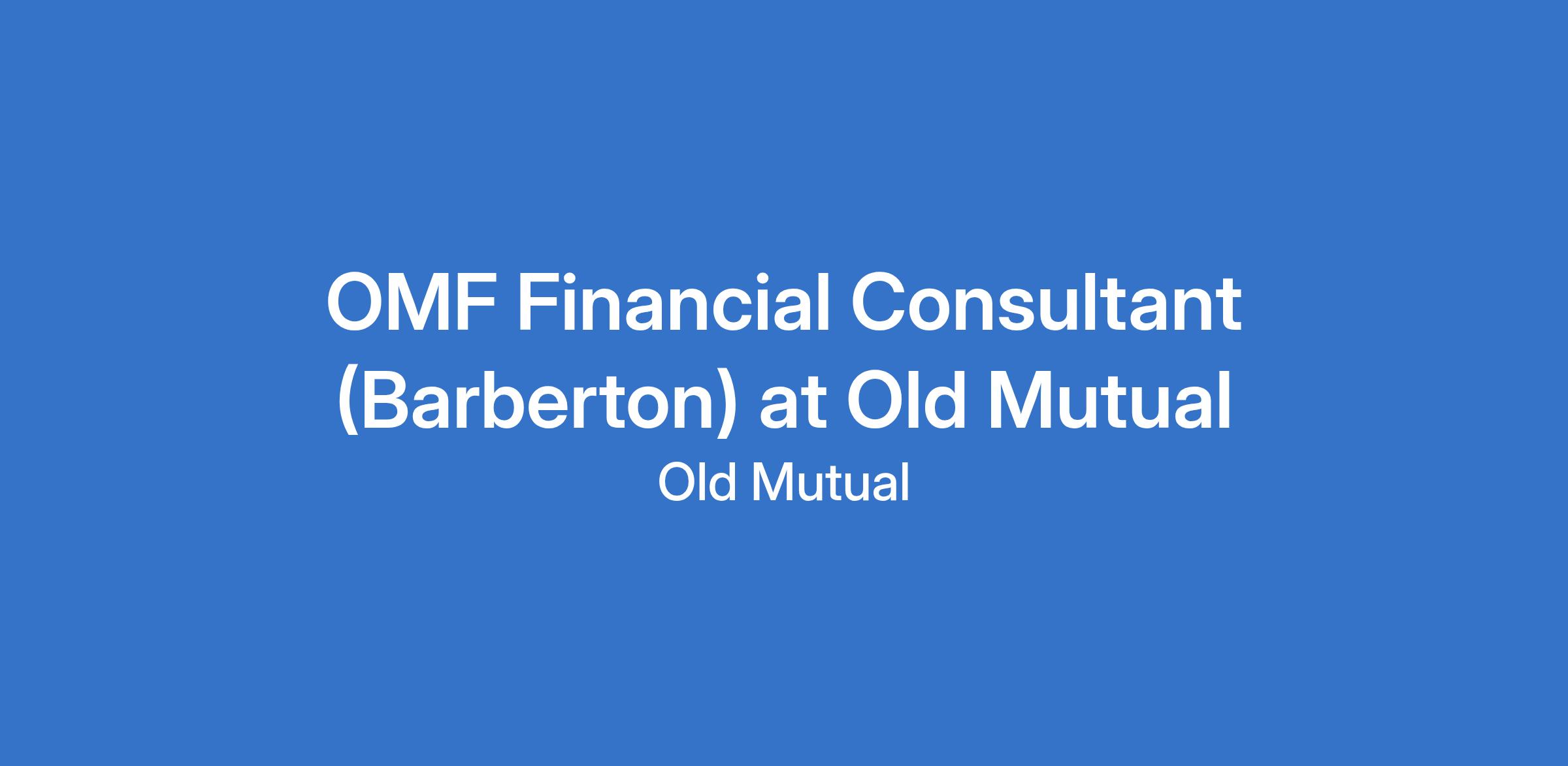 OMF Financial Consultant (Barberton) at Old Mutual
