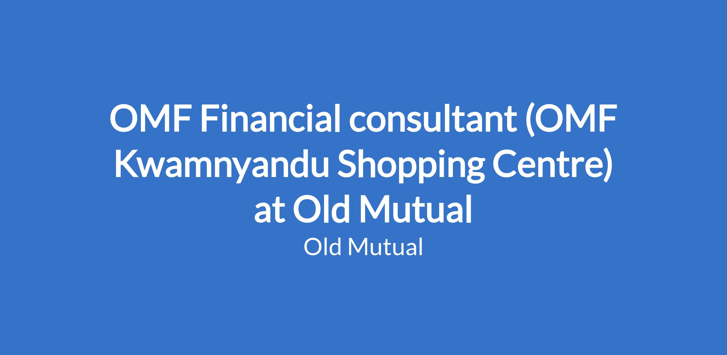 OMF Financial consultant (OMF Kwamnyandu Shopping Centre) at Old Mutual