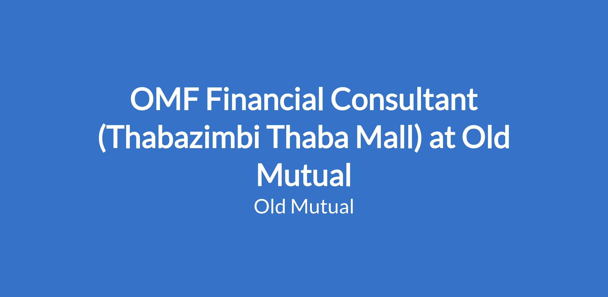 OMF Financial Consultant (Thabazimbi Thaba Mall) at Old Mutual