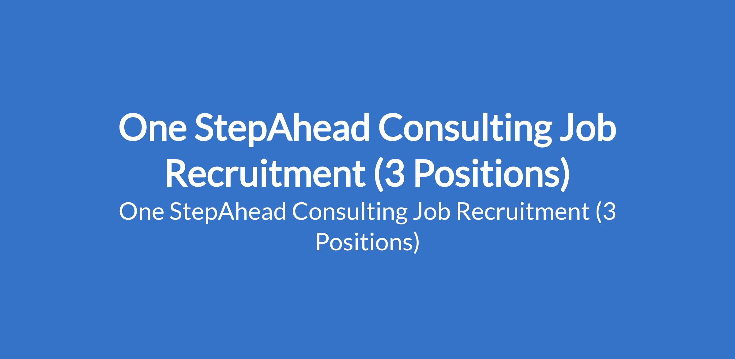 One StepAhead Consulting Job Recruitment (3 Positions)