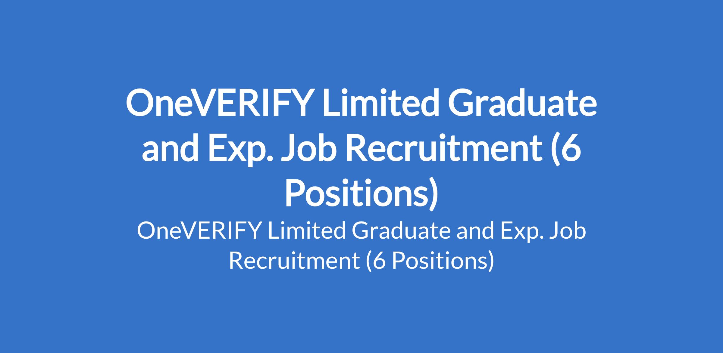 OneVERIFY Limited is recruiting suitably qualified candidates to fill the following graduate and experienced positions in Abuja and Lagos State: Receptionist (NYSC), Receptionist, Full Stack Developer (Laravel), Sales Manager, General Manager, and Operations Manager.