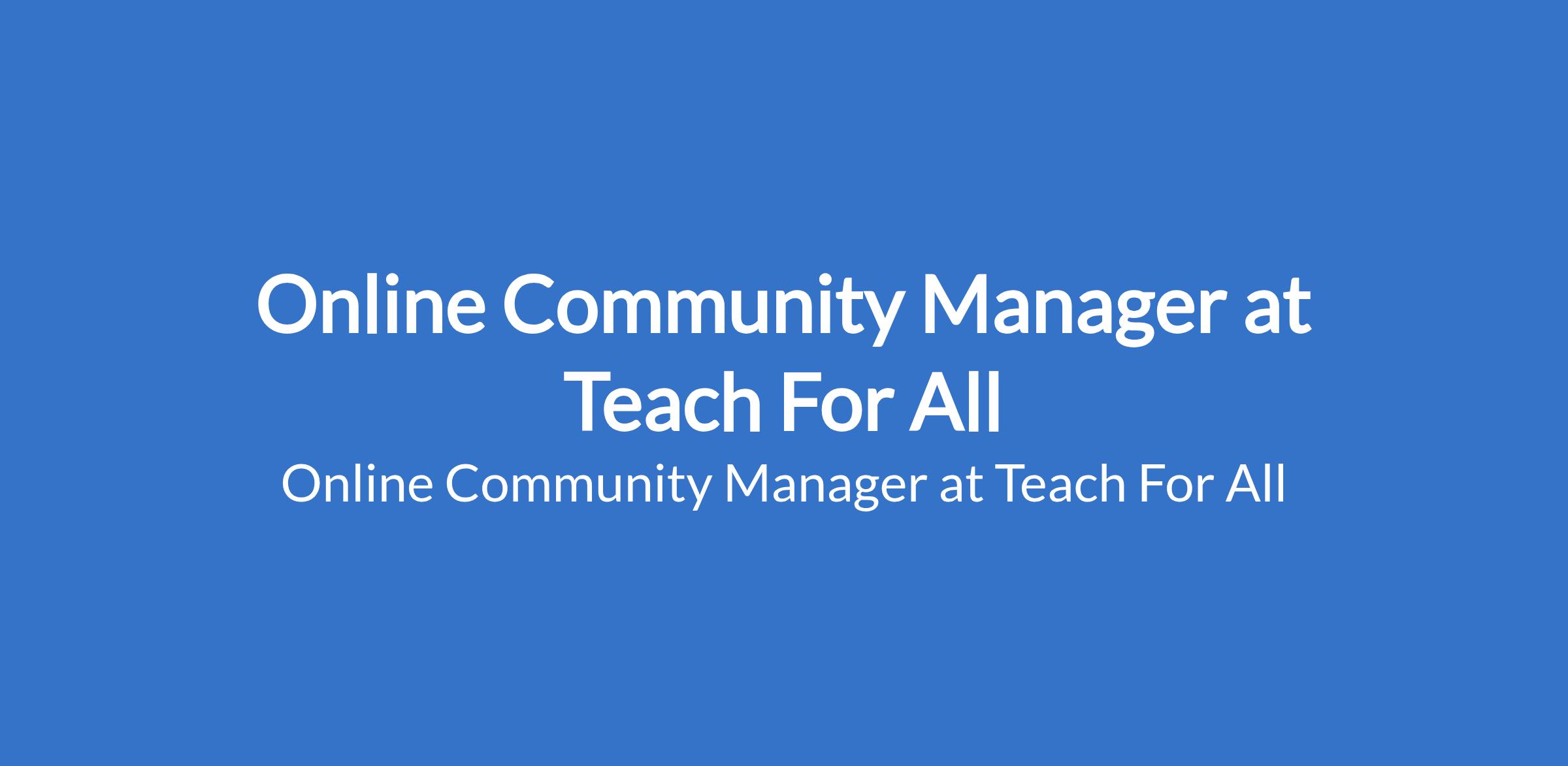 Teach For All is recruiting to fill the position of: Online Community Manager. Interested candidates should possess relevant qualifications.
