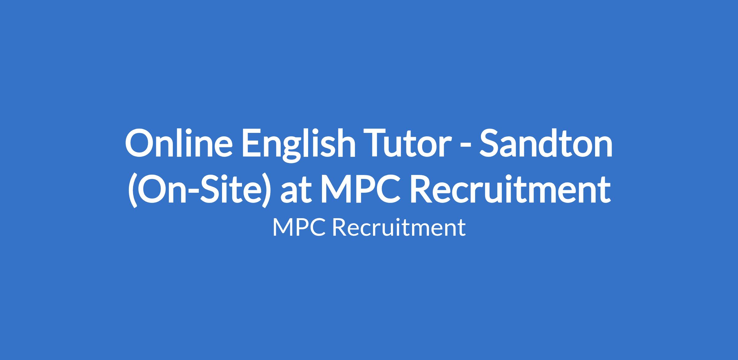 Online English Tutor - Sandton (On-Site) at MPC Recruitment