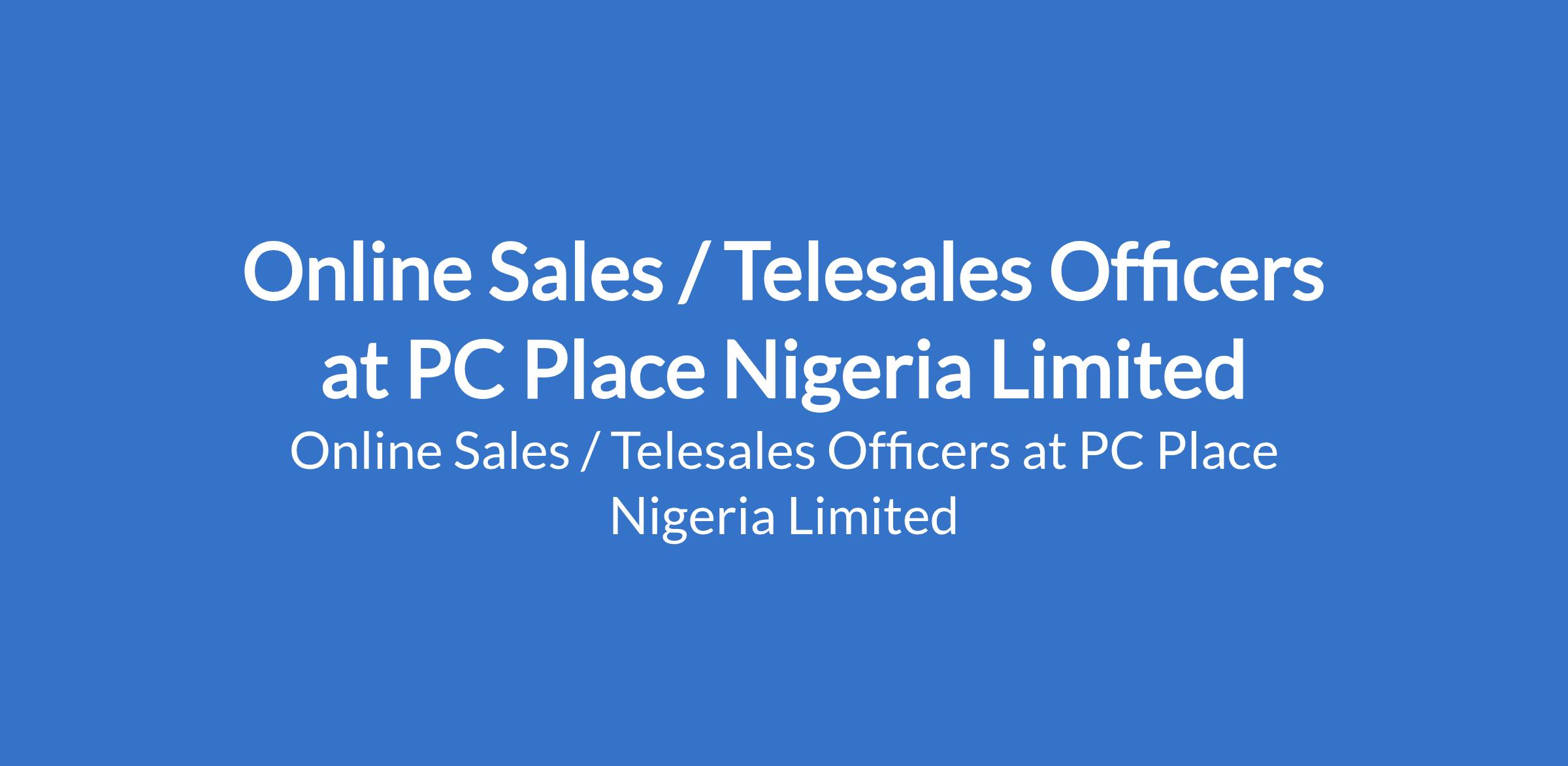 PC Place Nigeria Limited is recruiting to fill the position of: Online Sales / Telesales Officer. The position is located in Ikeja, Lagos State. Salary: N150,000 - N500,000 monthly. Interested candidates should possess relevant qualifications and work experience.